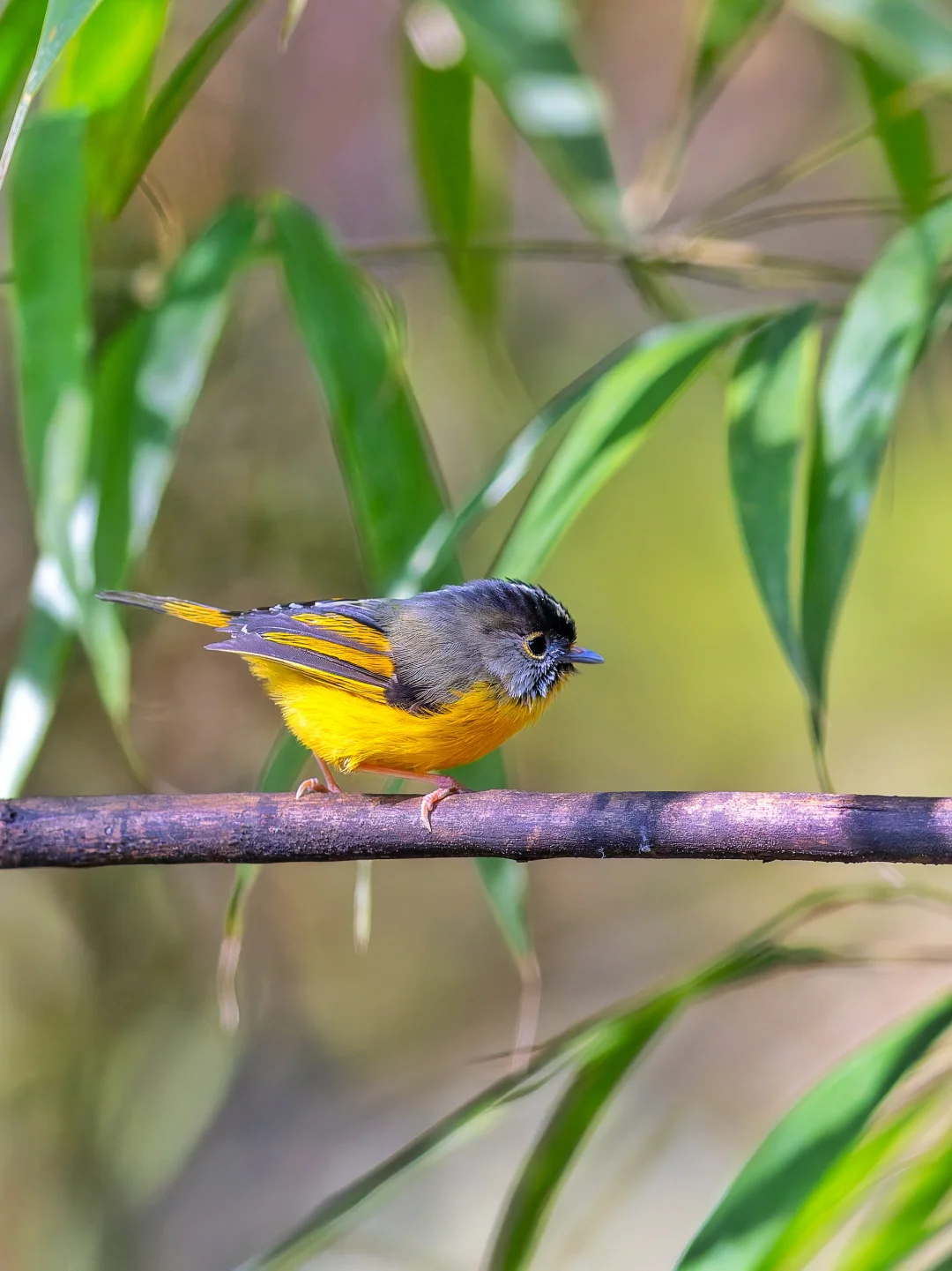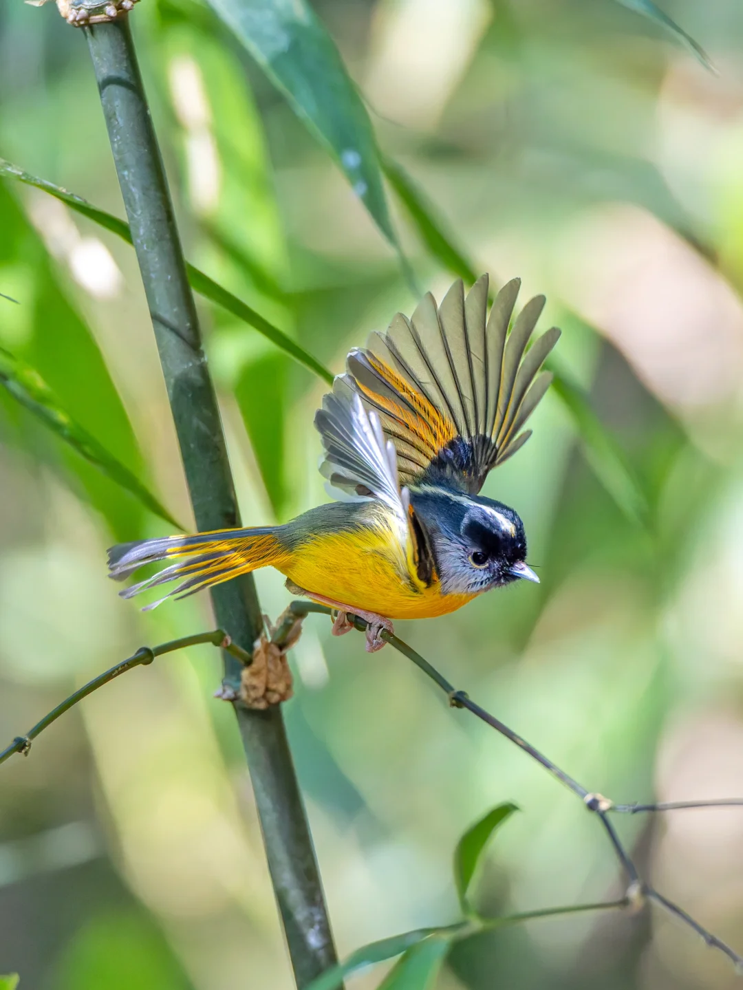 原创拍摄于2026.02 金胸雀鹛,Golden-breasted Fulvetta,雀形目鸦雀科金胸雀鹛属。在我国主要分布在西南地区。 金胸雀鹛是一个鸟界大明星,颜值实在是太高,非常受追捧,色彩斑斓以亮黄色的腹部和橙色翼斑著名。而且体型圆润,非常可爱,像一颗小太阳,橙色翼斑一闪一闪,简直美到犯规,谁看了不心动啊! 不过跳动真的很快,虽然见到多次,但还是想再拍一次,哈哈哈。