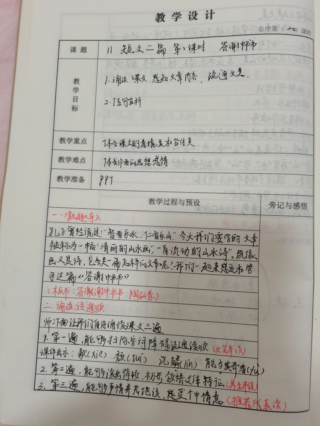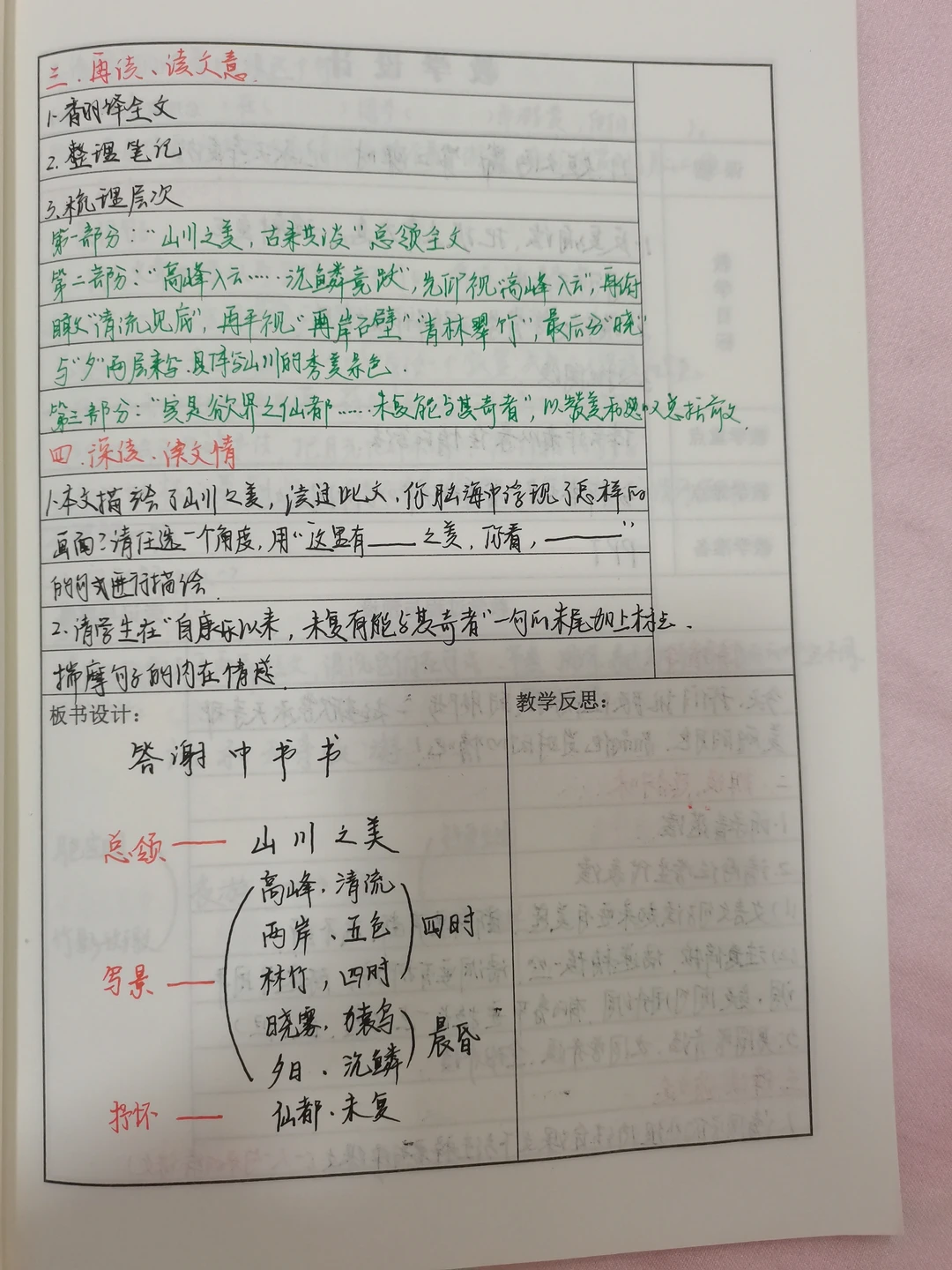 由于教案本格子比较少,所以教案比较简单,可能很很多地方不够全面,望理解。《三峡》《答谢中书书》《记承天寺夜游》《与朱元思书》《唐诗五首》《写作 学习描写景物》名著导读《红星闪耀中国》