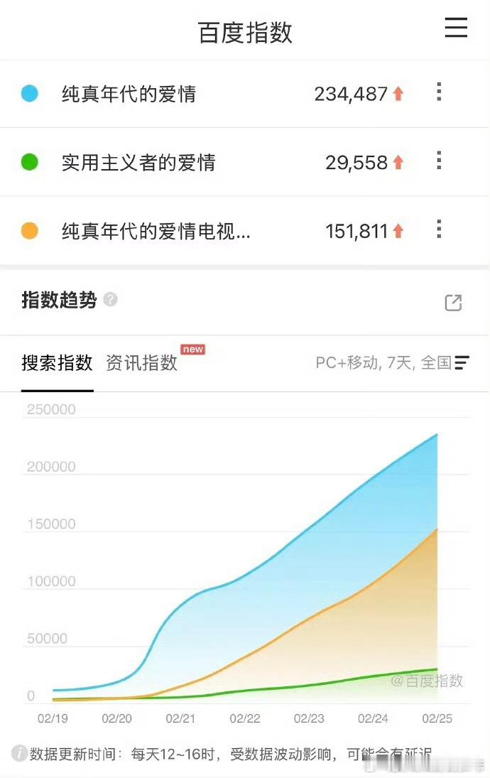 哇塞~纯真年代的爱情❤️各平台数据太美观了微指、百指、剧集热度全面🆙。男主陈飞