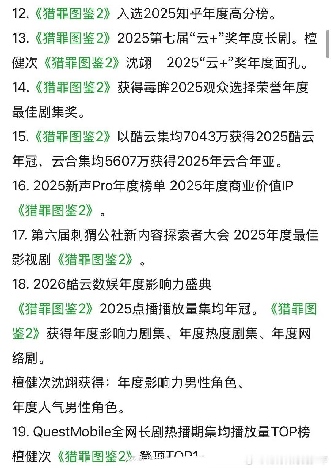 檀健次《猎罪图鉴2》剧集和个人获奖记录汇总这成绩谁不羡慕啊!别人可能是一部爆剧檀
