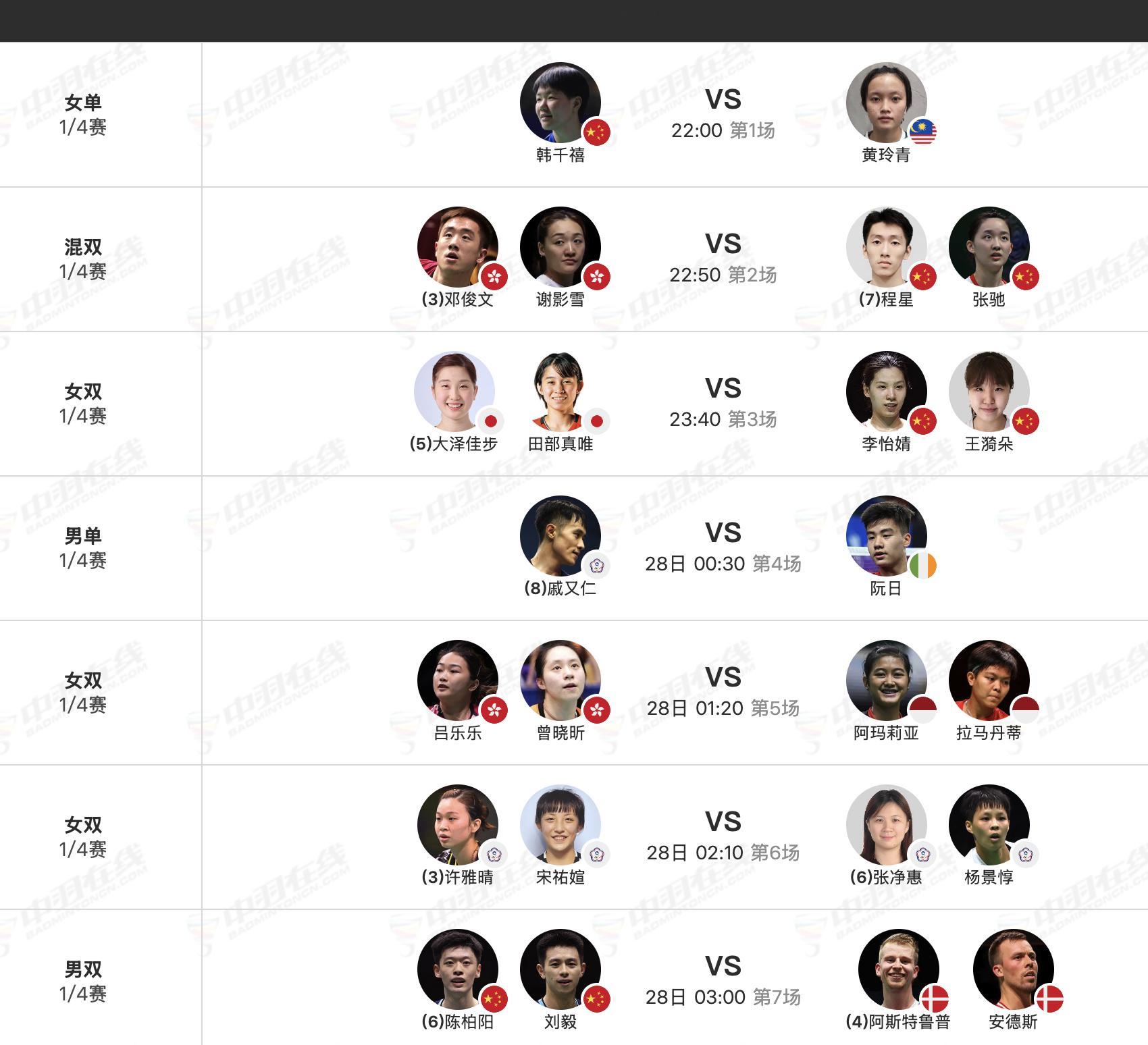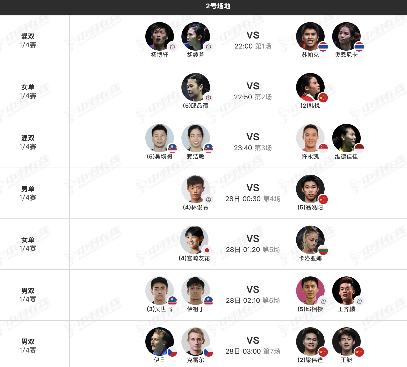 2026年德国羽毛球公开赛 2月27日各单项8进4,晚上22点开赛: