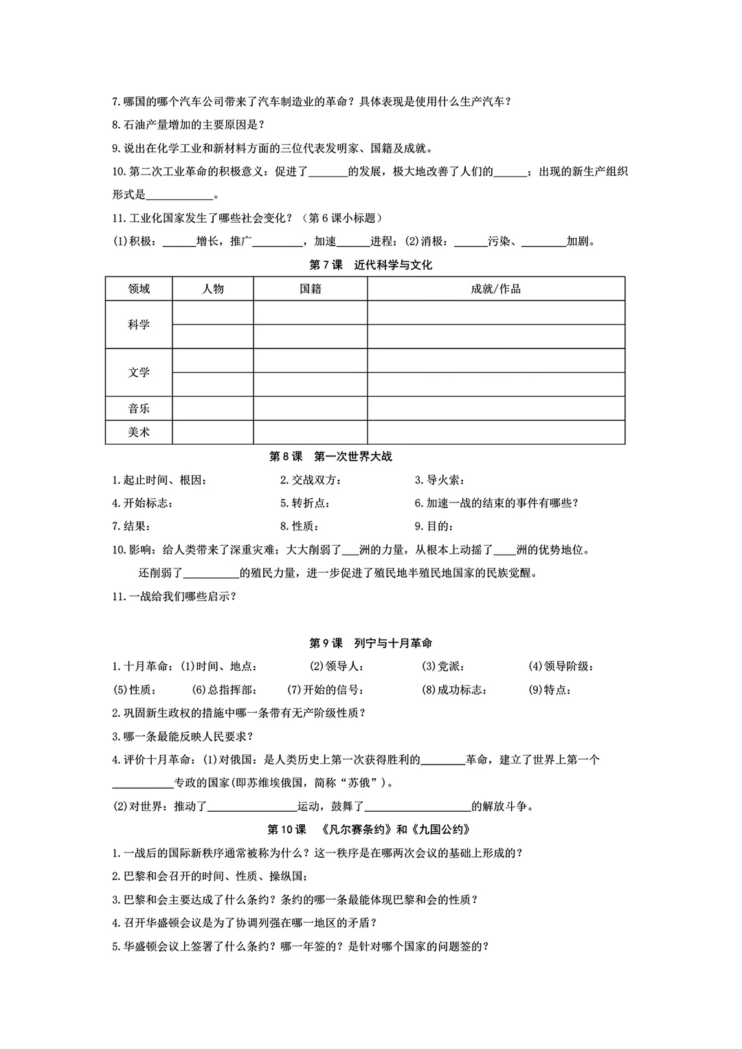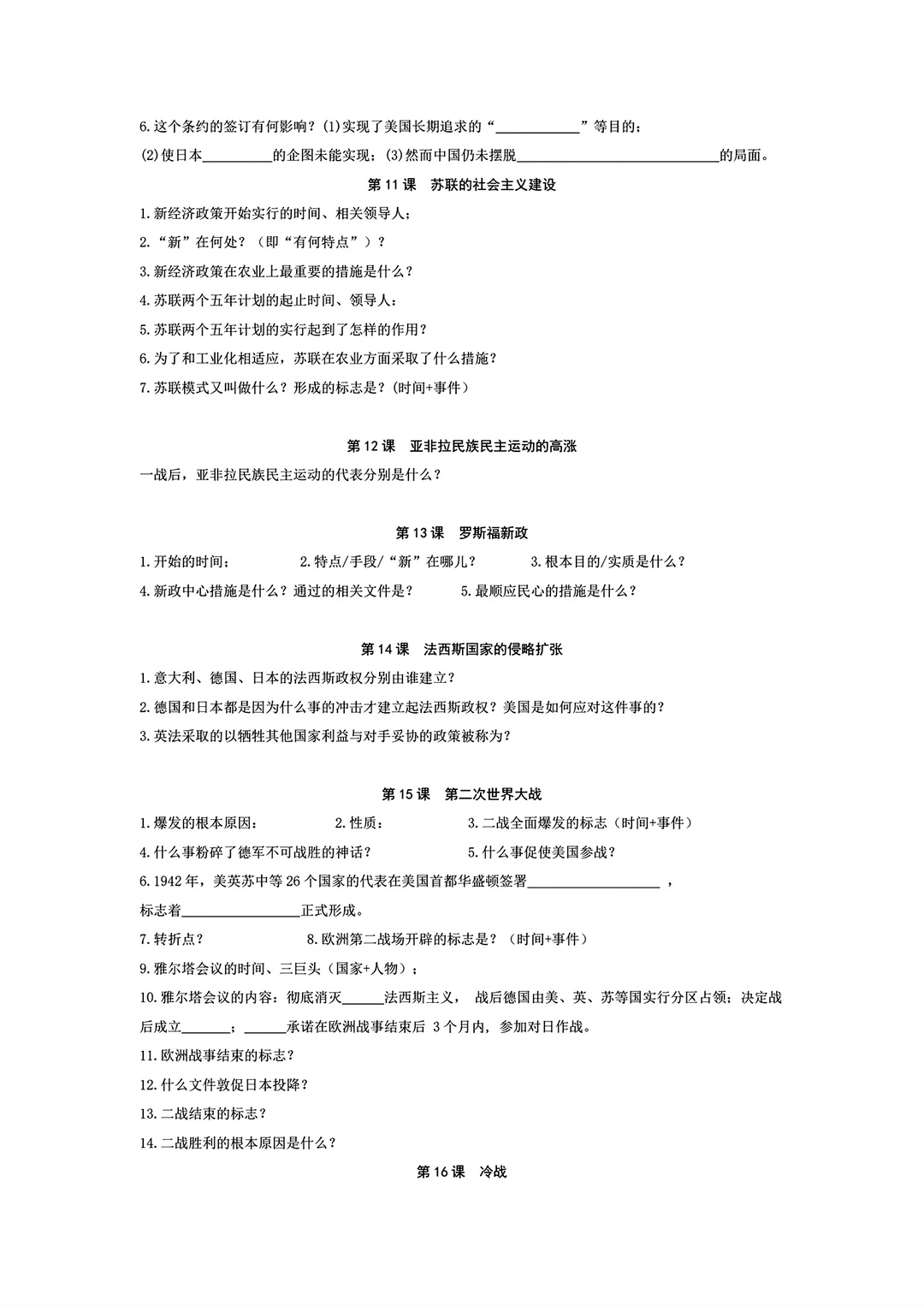 九年级下册历史精简版必背资料