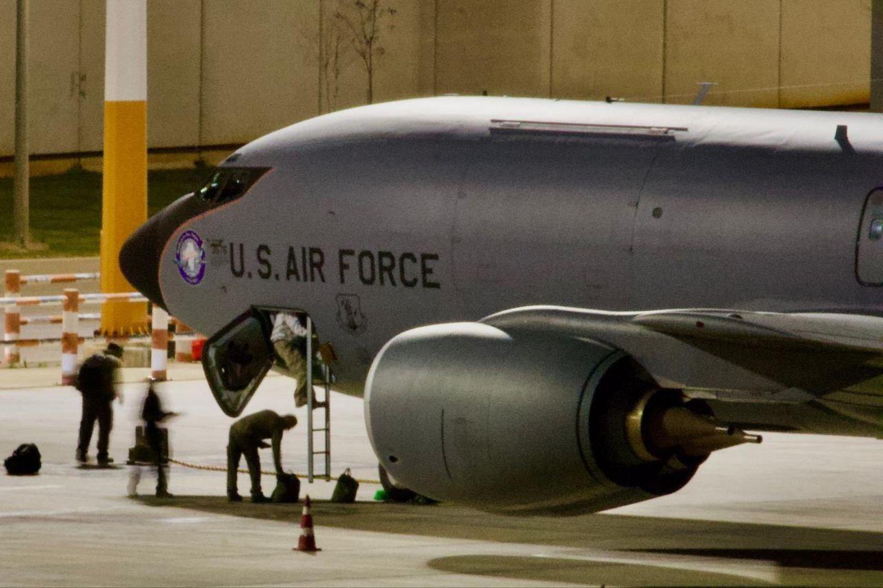 为加强其在中东地区的力量,应对与伊朗伊斯兰政权的紧张局势,美国空军的14架KC-135型加油机连夜降落在以色列中部的本古里安机场