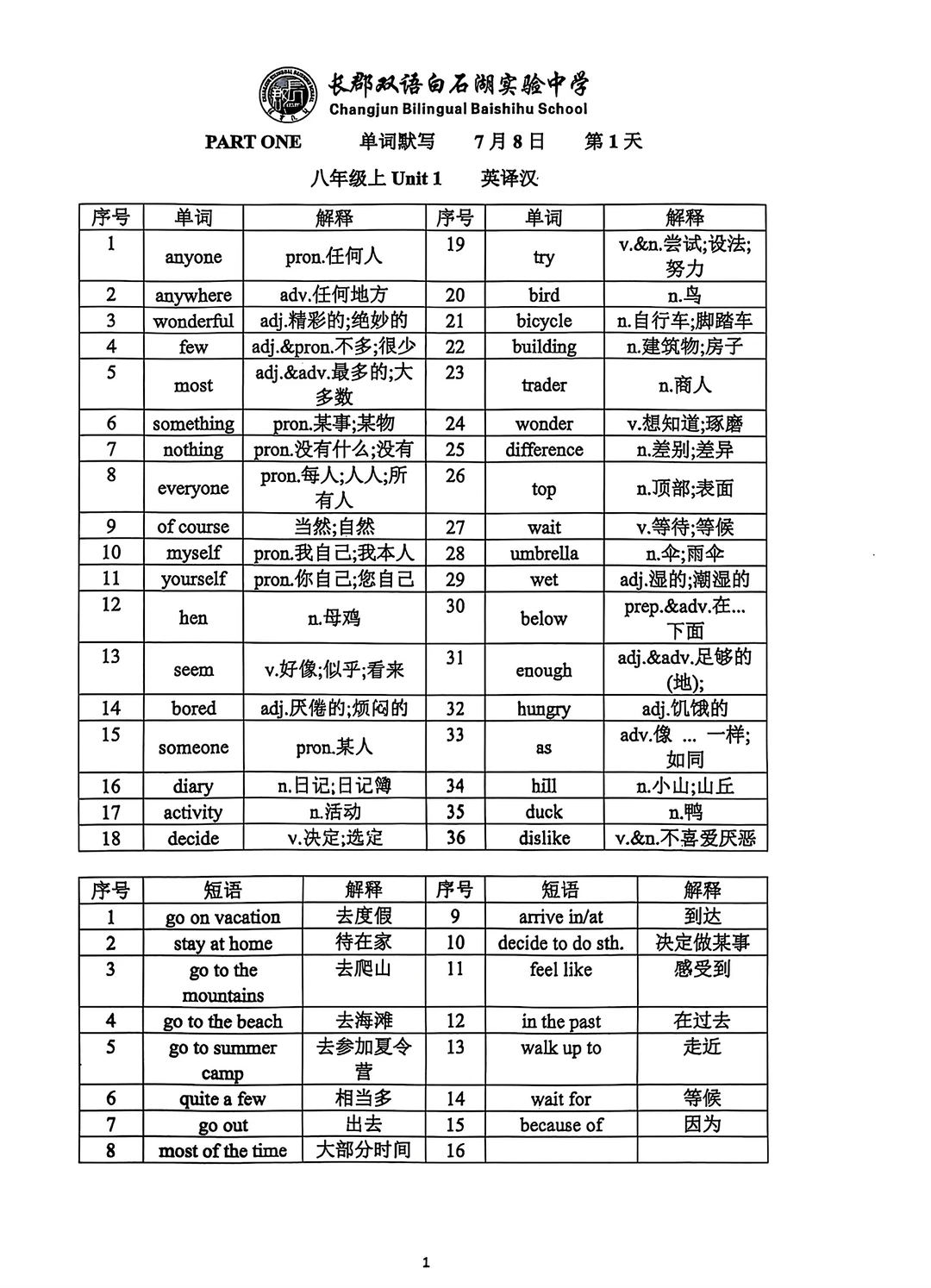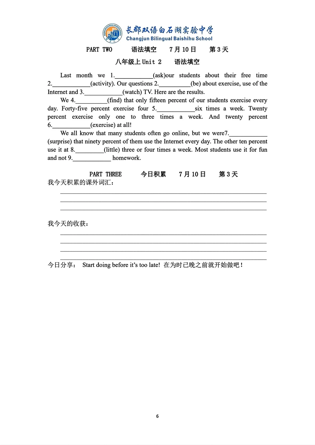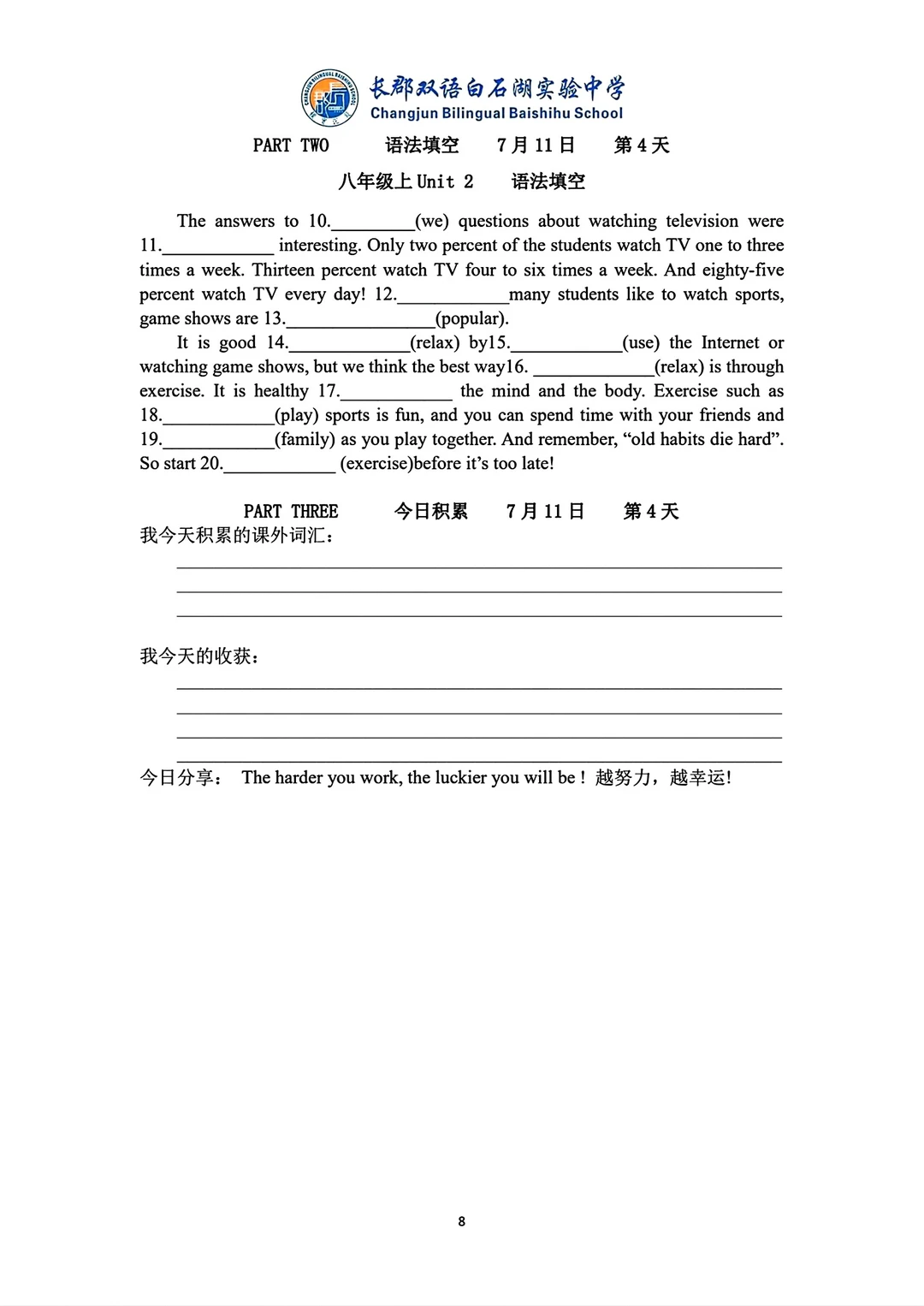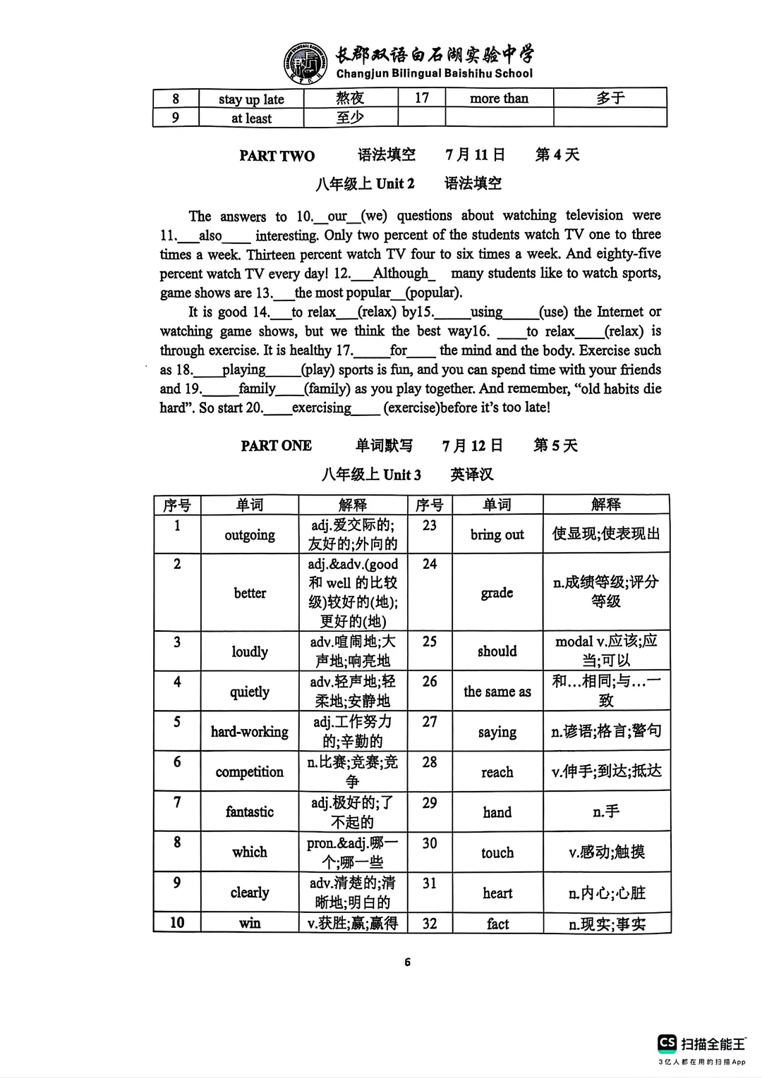 这是一份最新的长郡学校发的八升九英语资料,含有两个pdf文档,一个词汇语法练习册79页。一个词汇语法背诵手册62.页,背诵手册就是练习册的答案,上面有学校的logo,页数太多就没有去掉