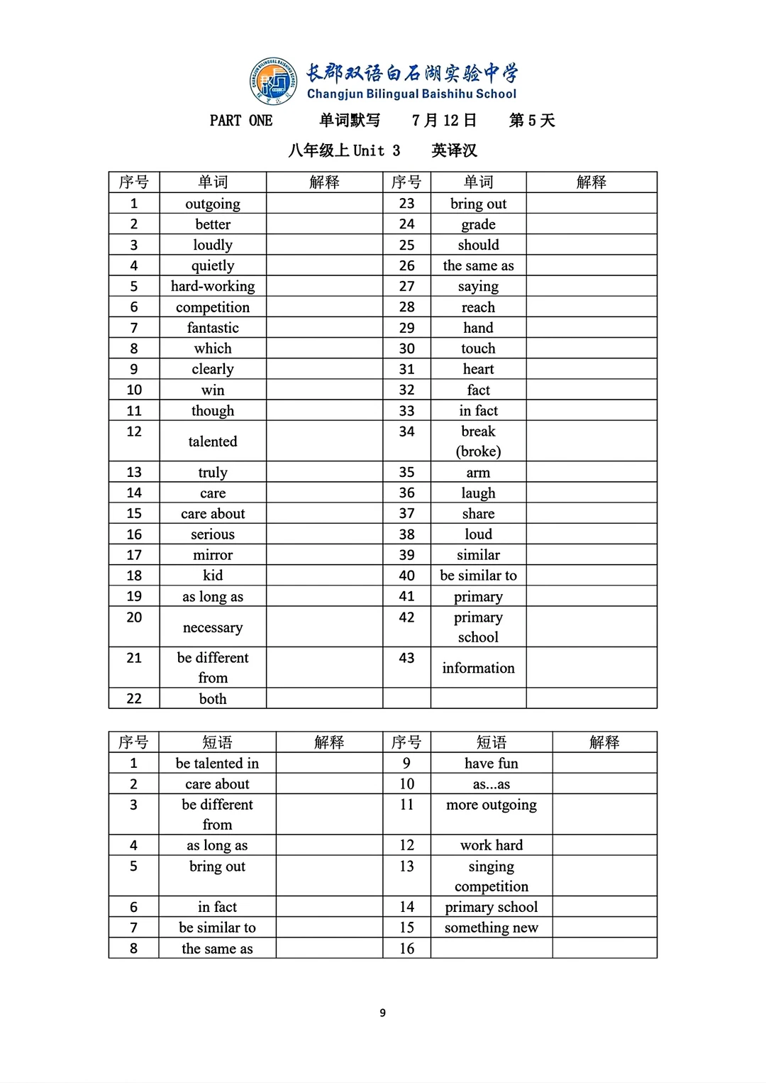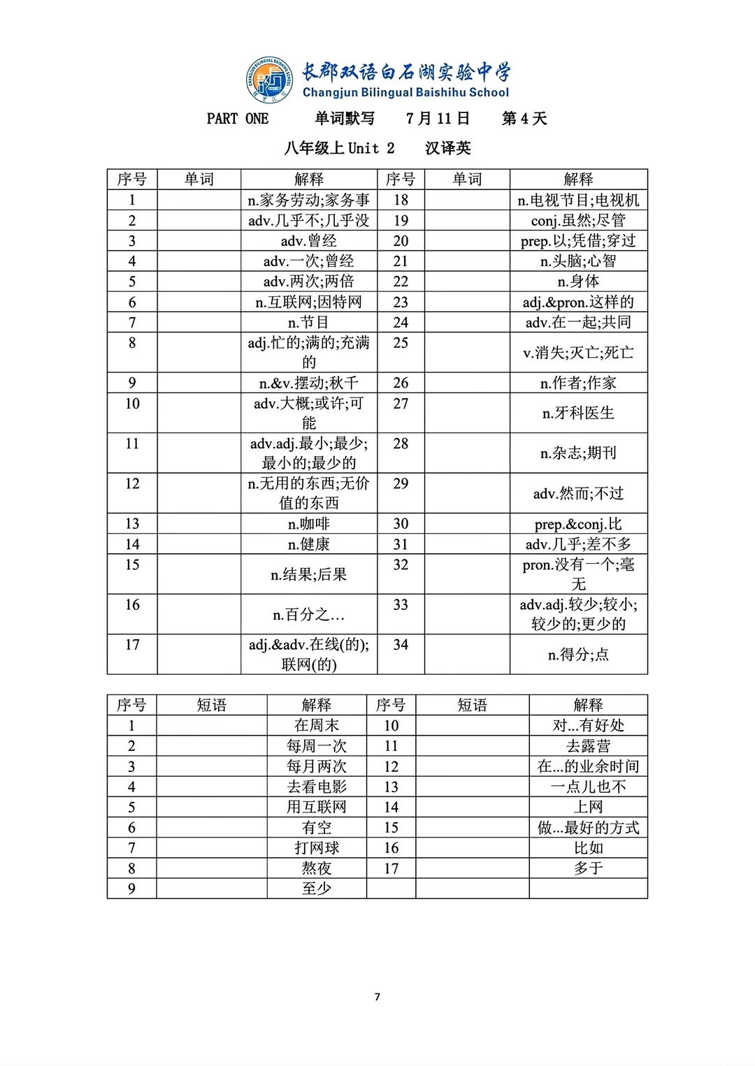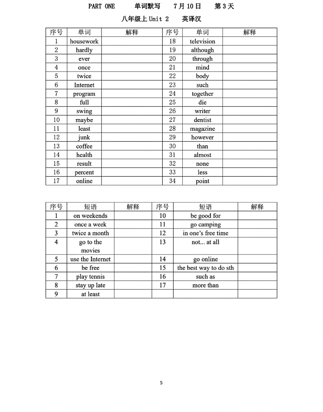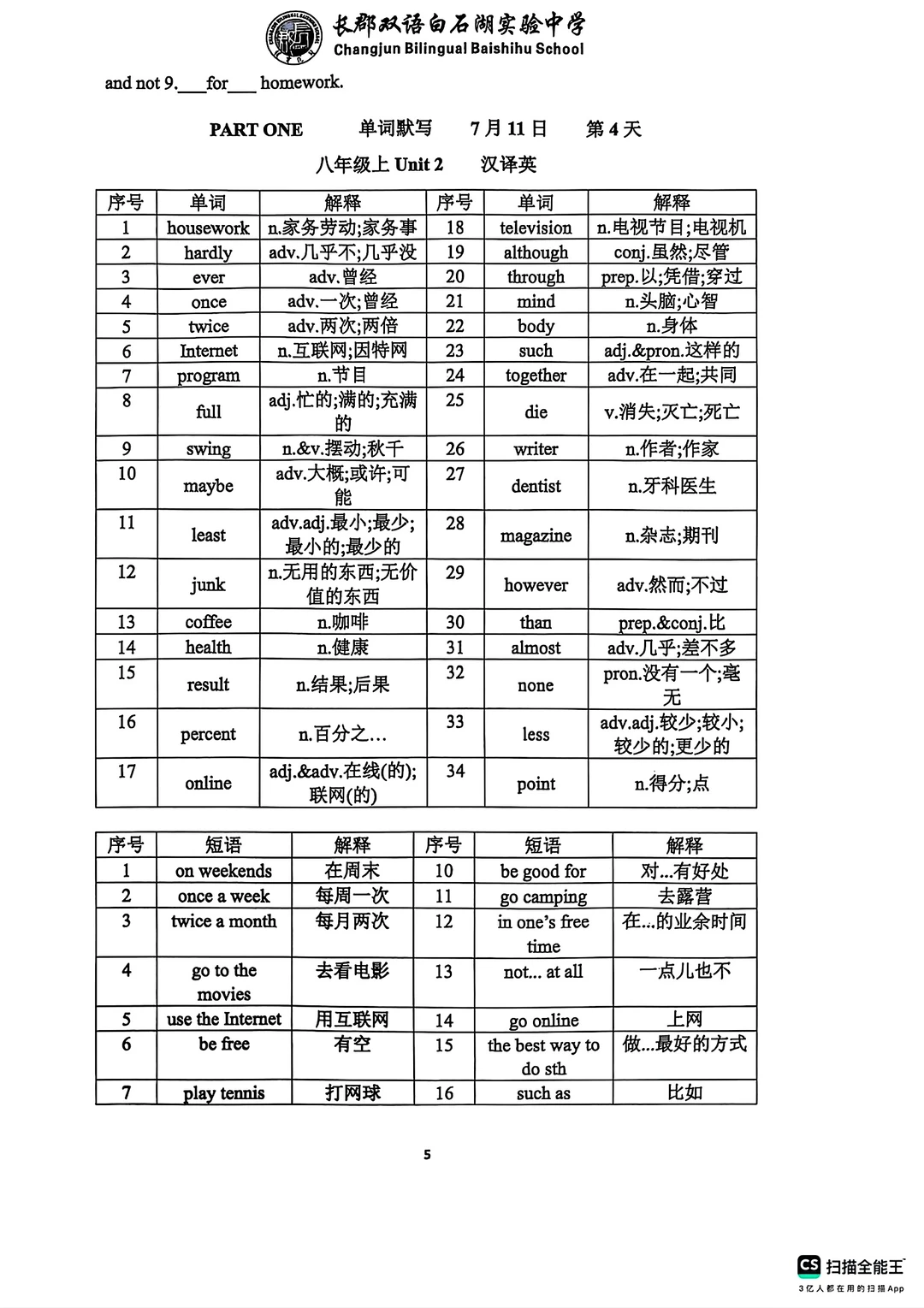 8升9八年级上下册英语语法词汇练习册