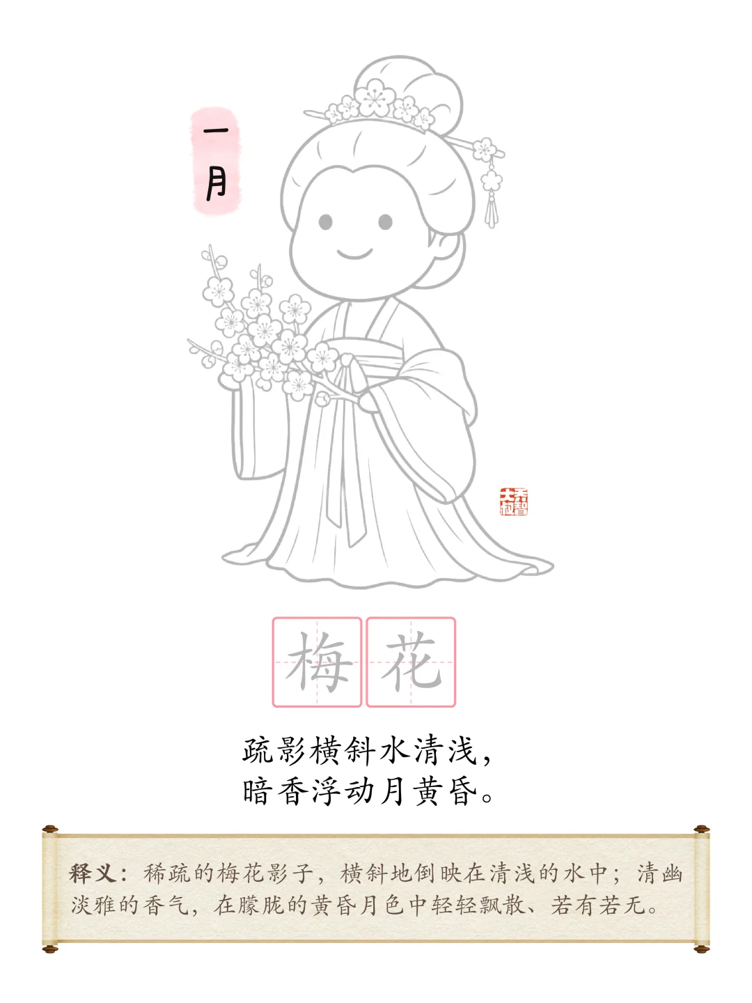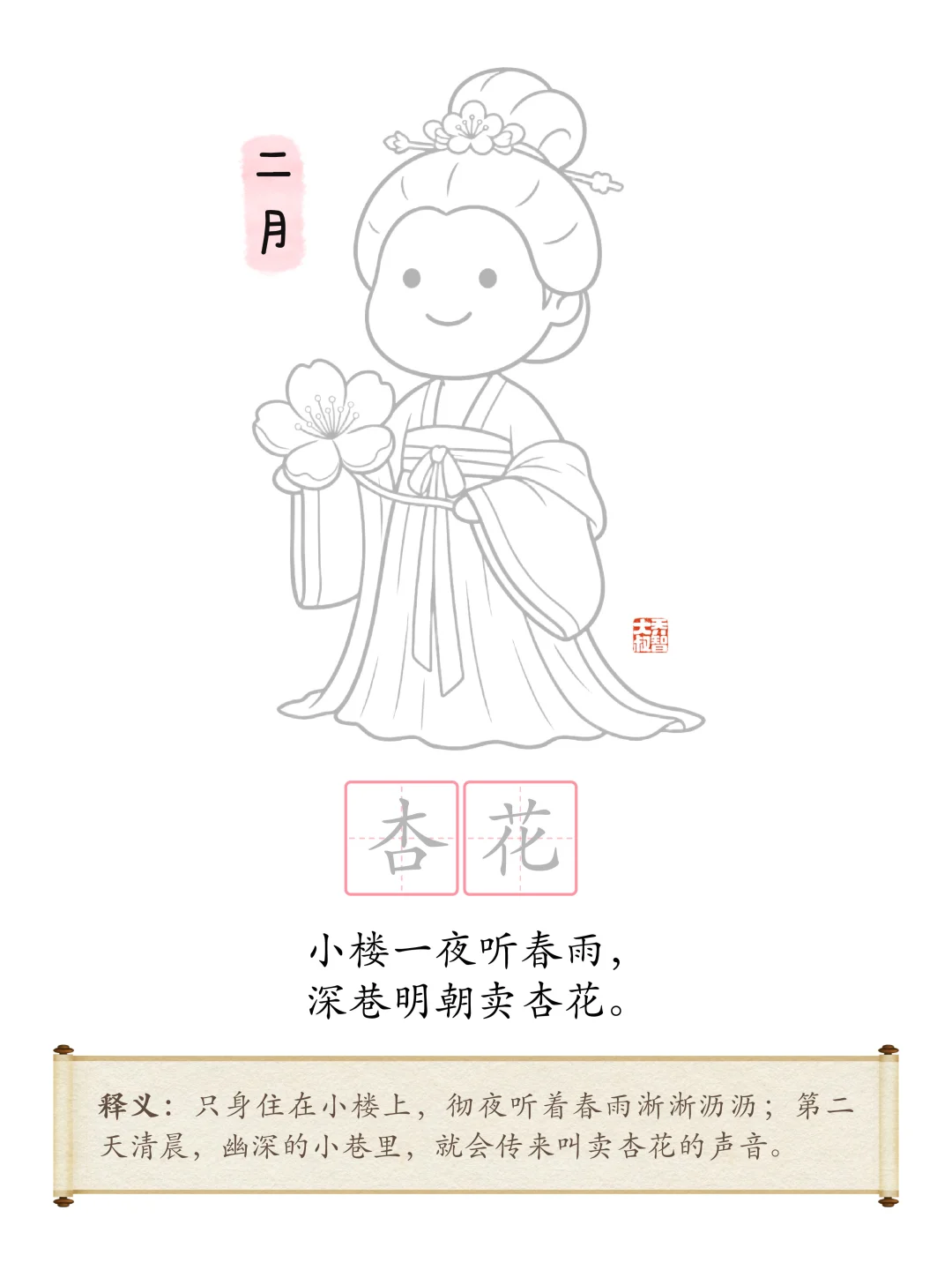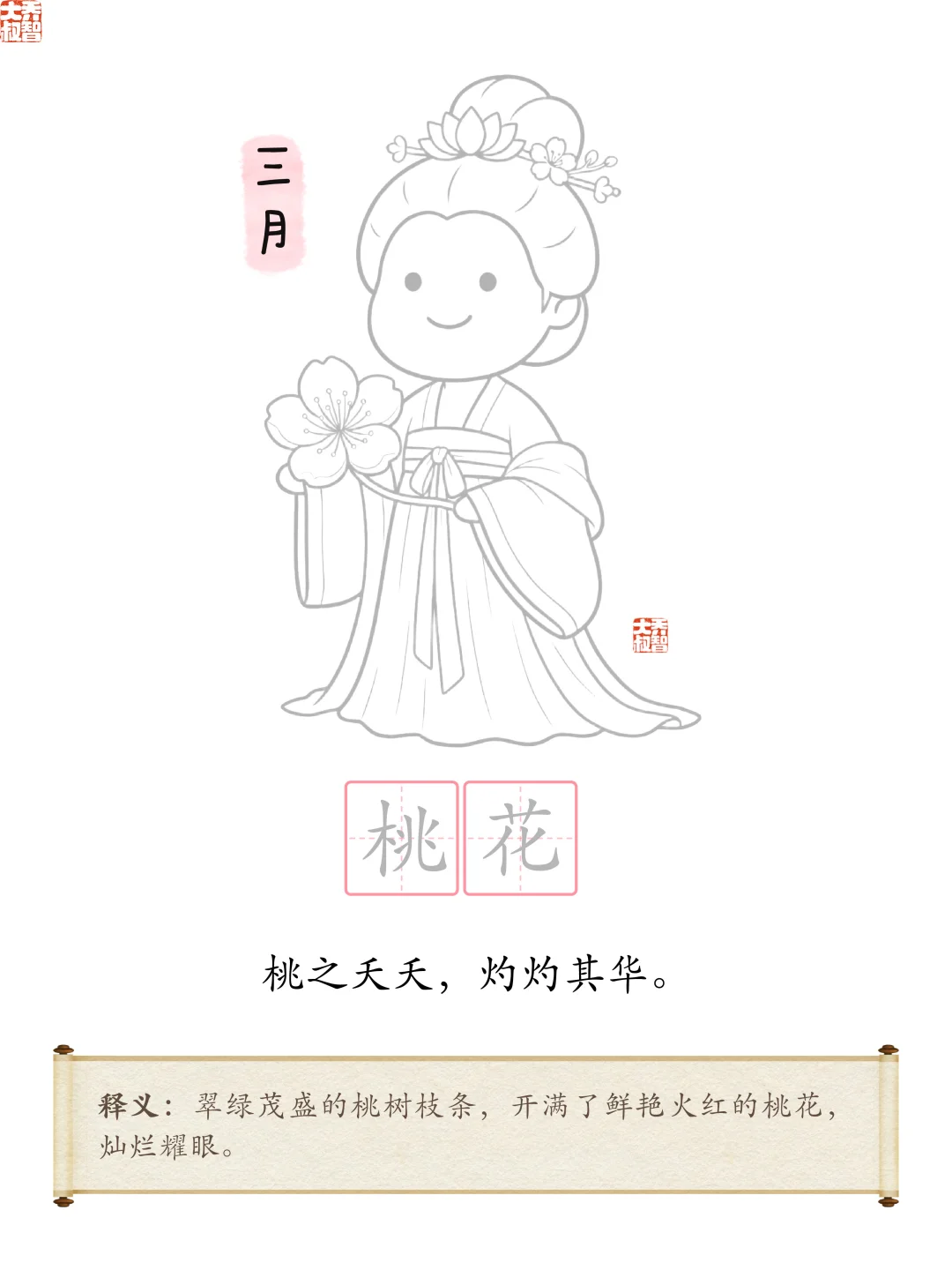 [樱花R] 春暖花开,开学啦! [彩虹R] 今天大叔为大家分享 [星R] 适合小朋友涂色、描红、学古诗 [星R] 适合大朋友做幼儿园环创 [星R] 十二花神系列可打印环创素材 下载 打印哟