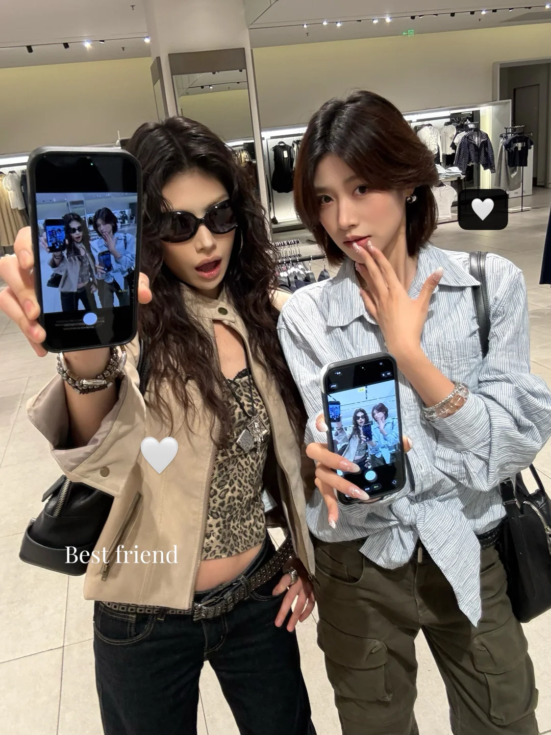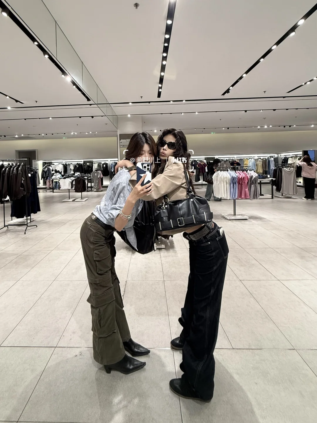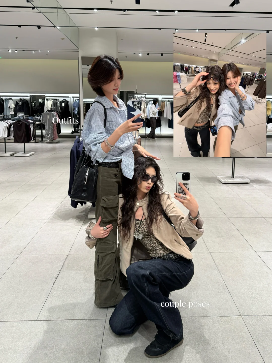 姐妹拍照姿势 合照姿势 对镜自拍 今日份自拍 辣妹拍照姿势 两人合照 秋冬穿搭 ootdinspo ins风拍照 zara试衣间