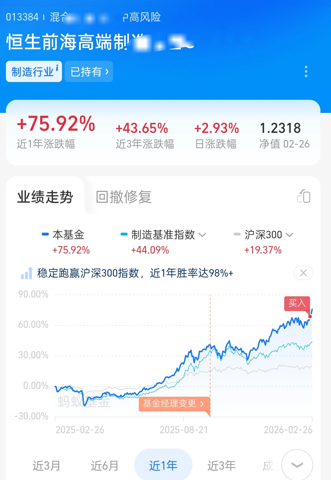 2026开门红耶!行情涨的真是不错呢,我最配置了恒生前海高端制造,连涨2天,替我挣了4.32%,收益真不错呢!