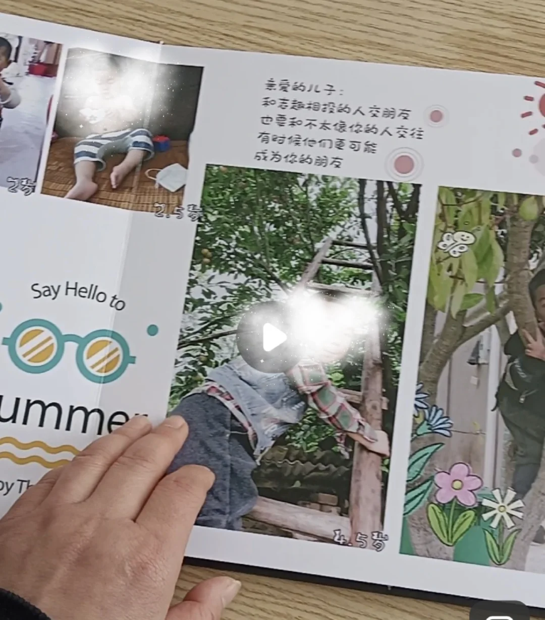 缓解我们关系的关键是相册,孩子上学前都像天使,对孩子只有爱,没有期待。那时每年都有给孩子做相册,因为是自已排版设计的,每页上都有写些表达对孩子爱的话语。