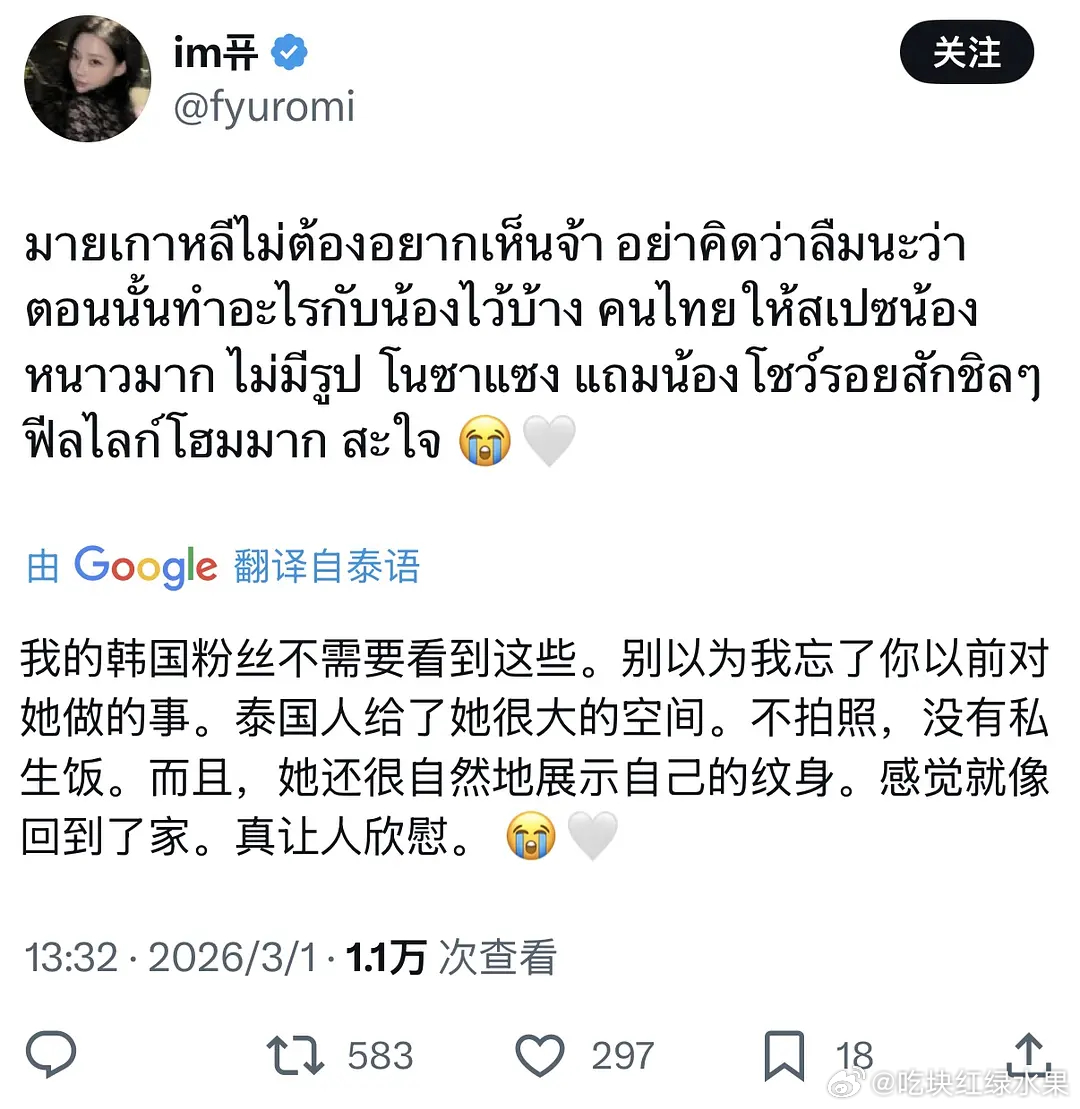 泰国粉丝爆料自己偶遇了一个长得很像泰妍的人 手臂上有winter同款纹身 结果发