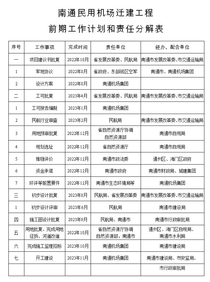 江苏省政府办公厅公布了南通新机场(上海第三机场)的工作计划。
