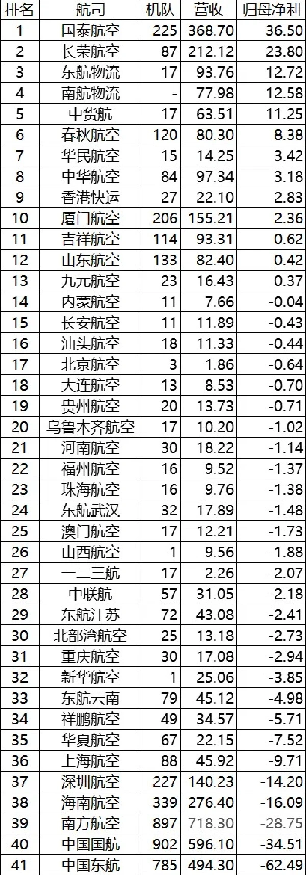 其实,大部分航空公司亏损在5亿元以下,甚至在1亿元上下,绝对亏损金额并不高