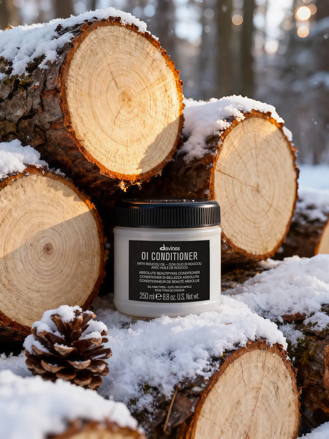 Davines大卫尼斯欧艾系列,就像把这片雪林化成一整天的日常香气,干净、柔软,又带着一丝木质的温暖气息