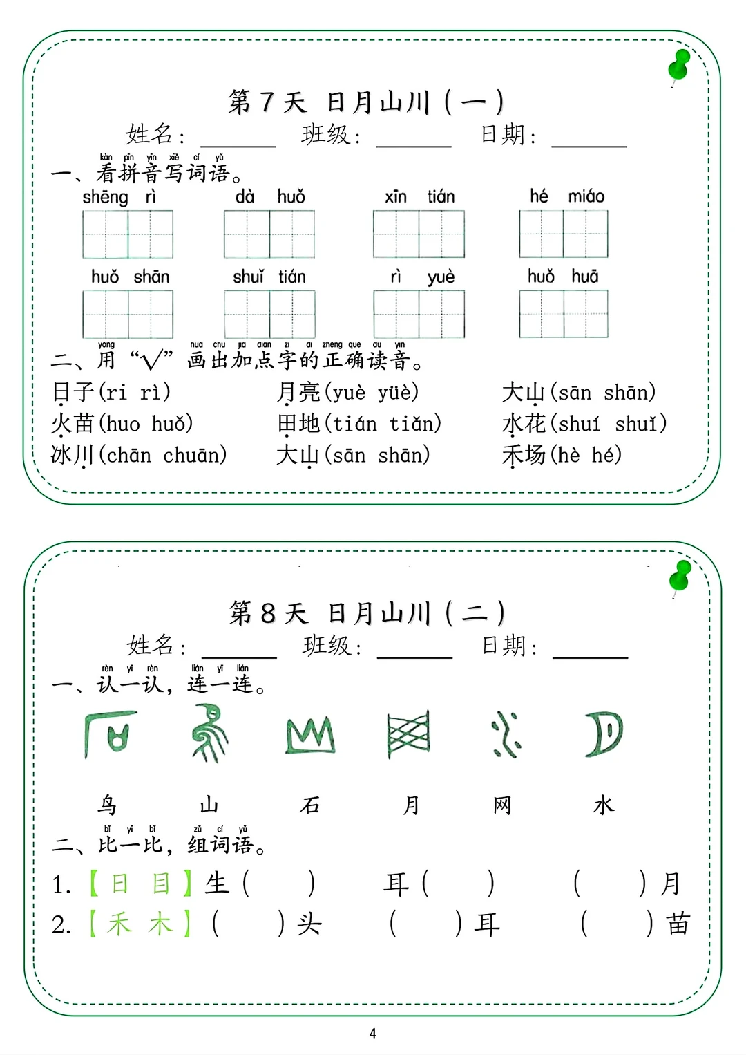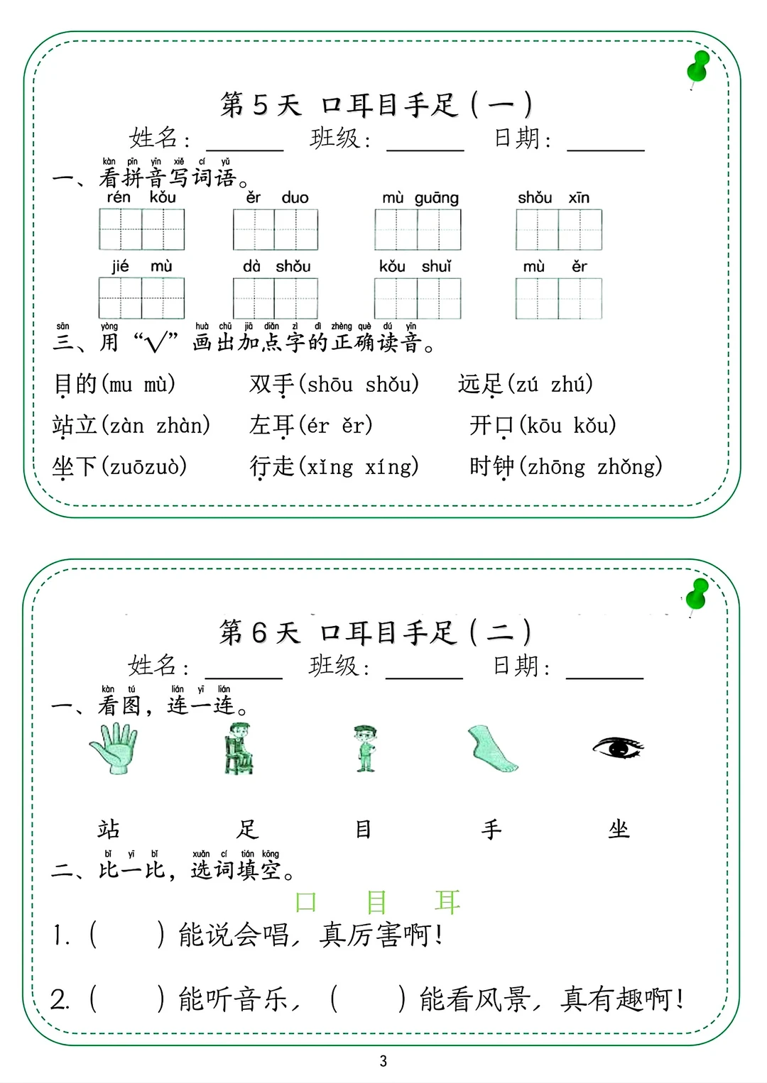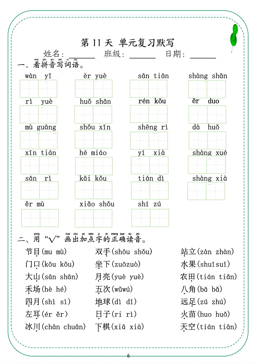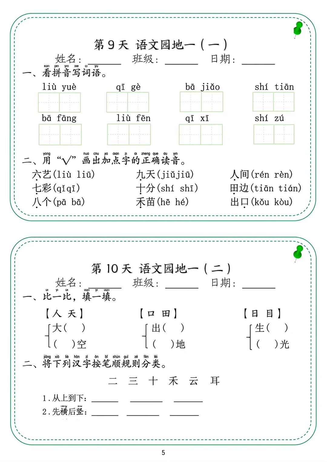 长沙名校一年级上册语文三份学习资料