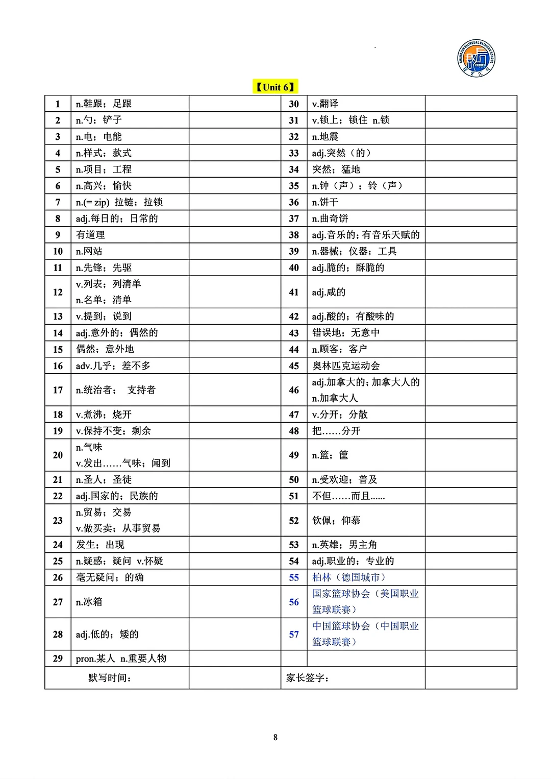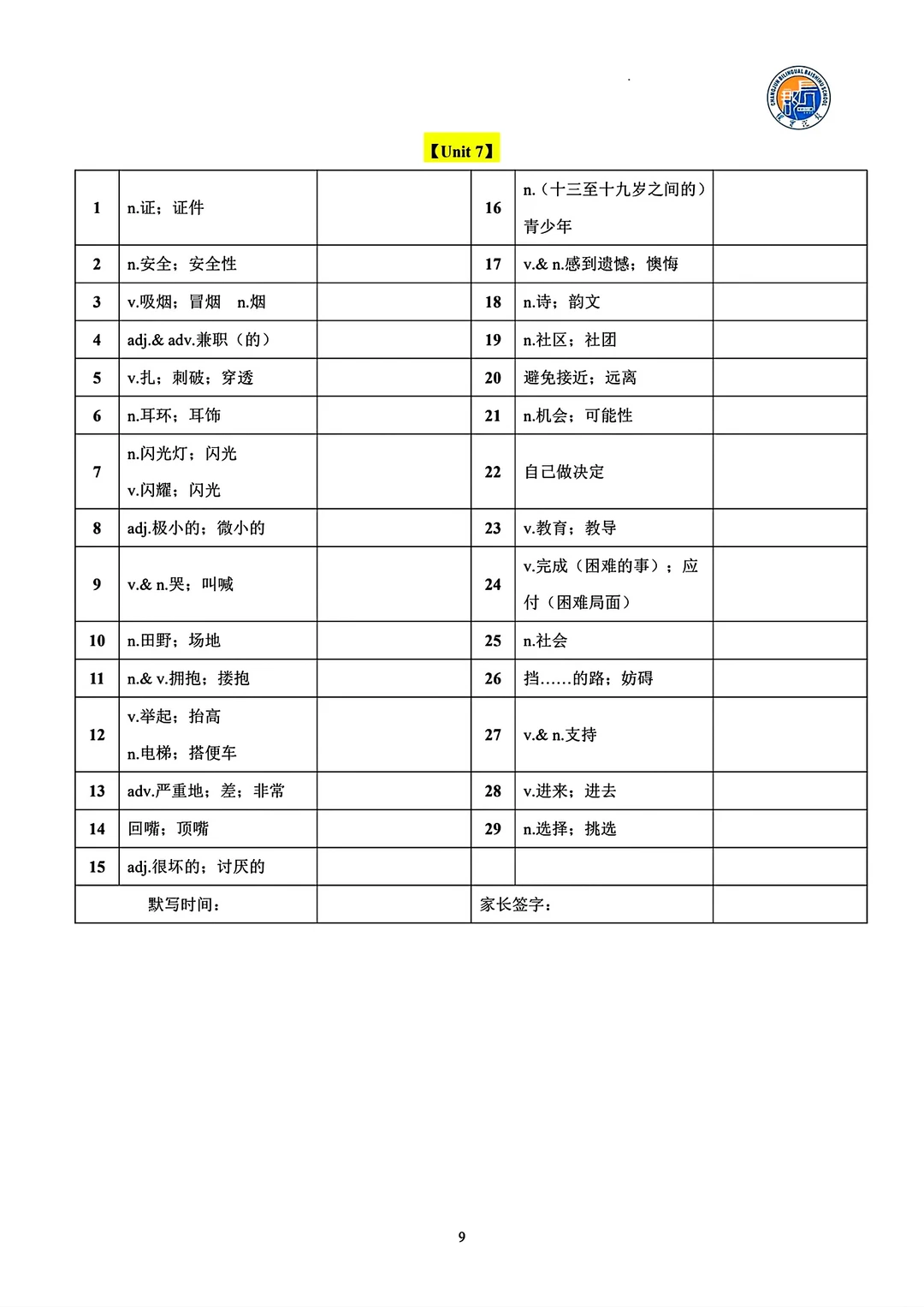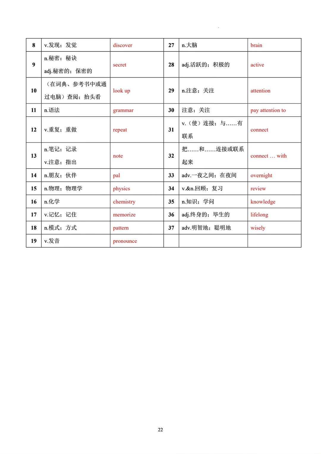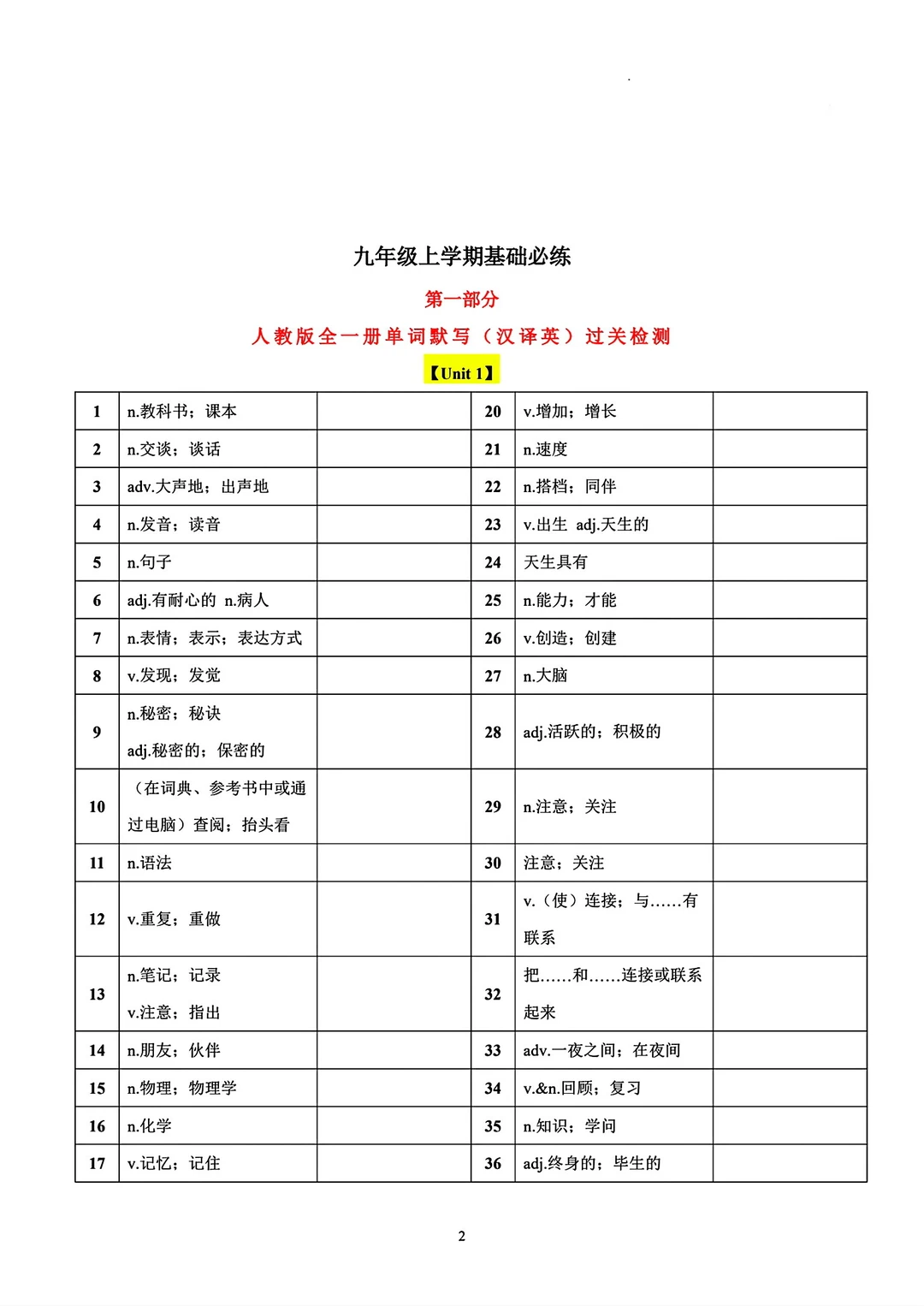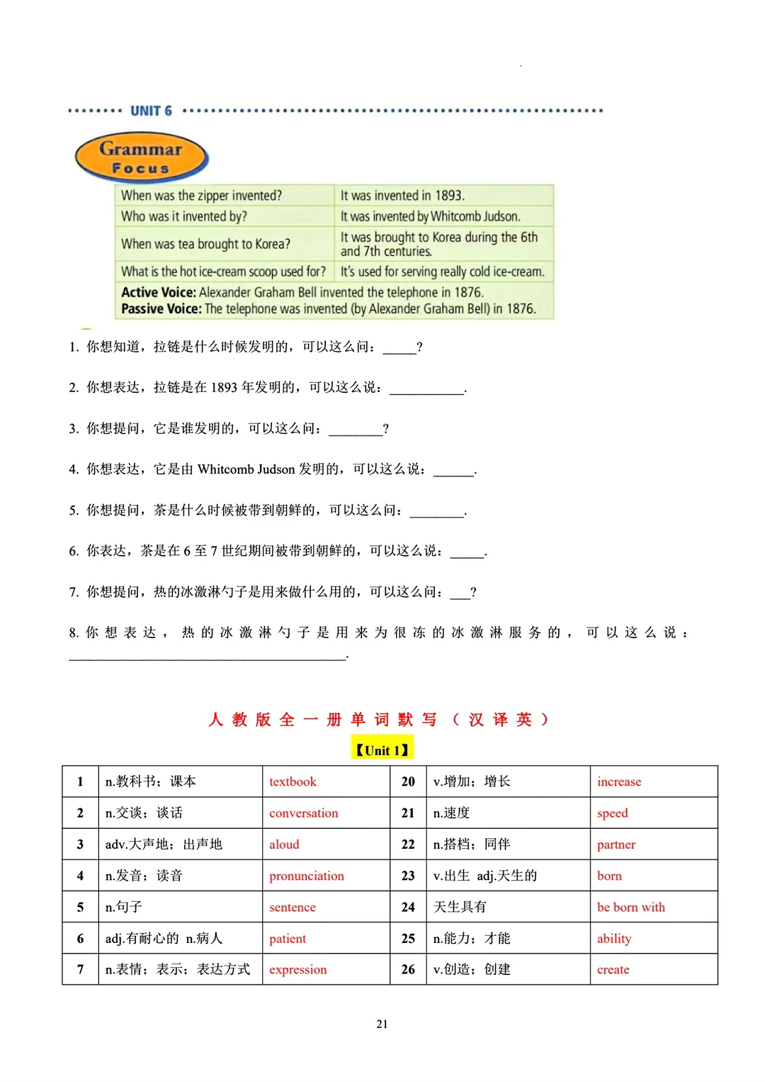 8升9 九年级英语句型词汇