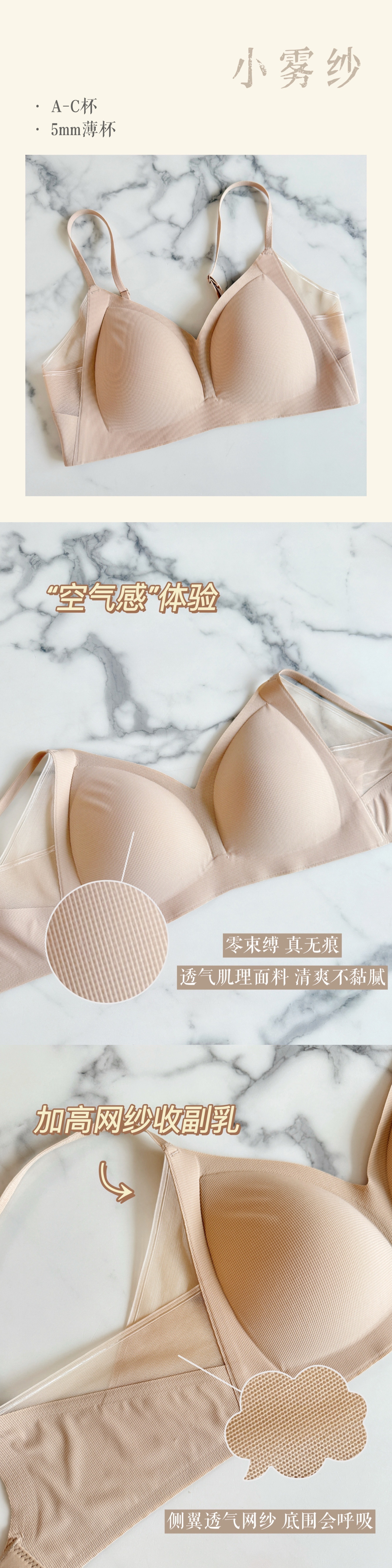 每一款内衣我都在图片上标注了合适的罩杯,无钢圈内衣选尺寸没有老式钢圈内衣那么麻烦和死板,因为柔软且余度比较大,所以可以用S/M/L/XL做区分就行,方便多了!这也是我爱无钢圈内衣的原因之一,在买的时候就简单,穿的时候也舒服。我80b,穿的是L号,给友友们做个参考。