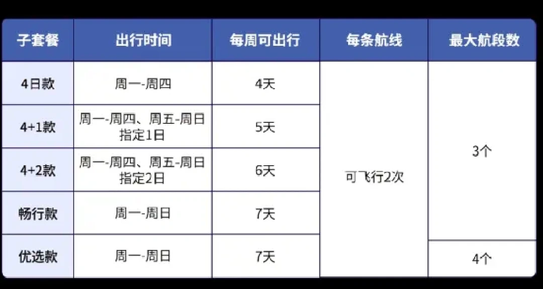 限制条件:需提前5个自然日(含)兑票,同一航线最多可飞行2次,优选款可同时兑换4个航段,其他套餐可同时兑换3个航段。