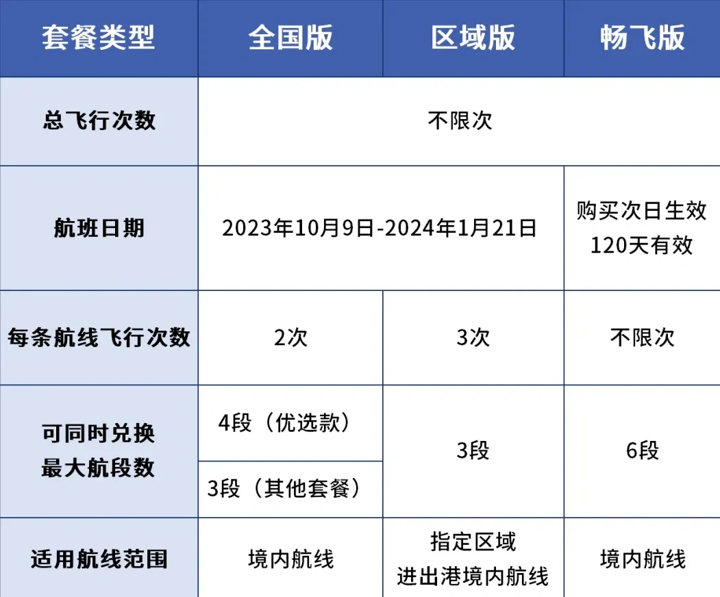 产品分:全国版、区域版、畅飞版