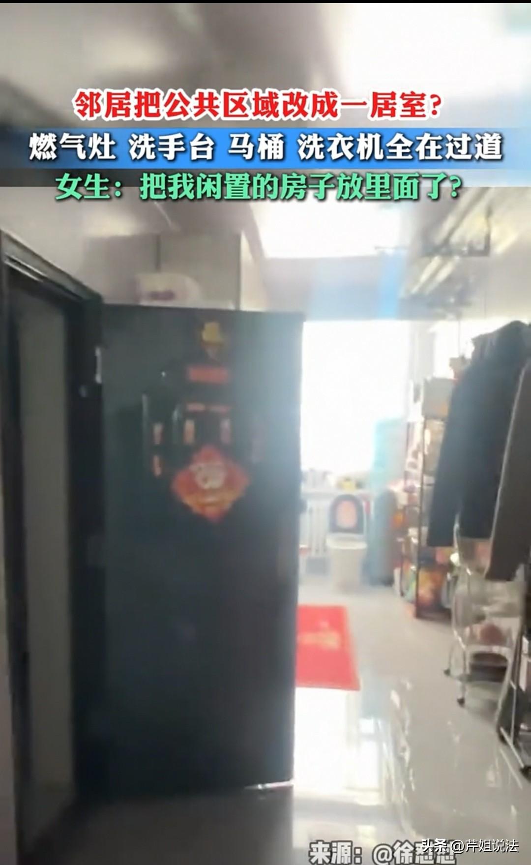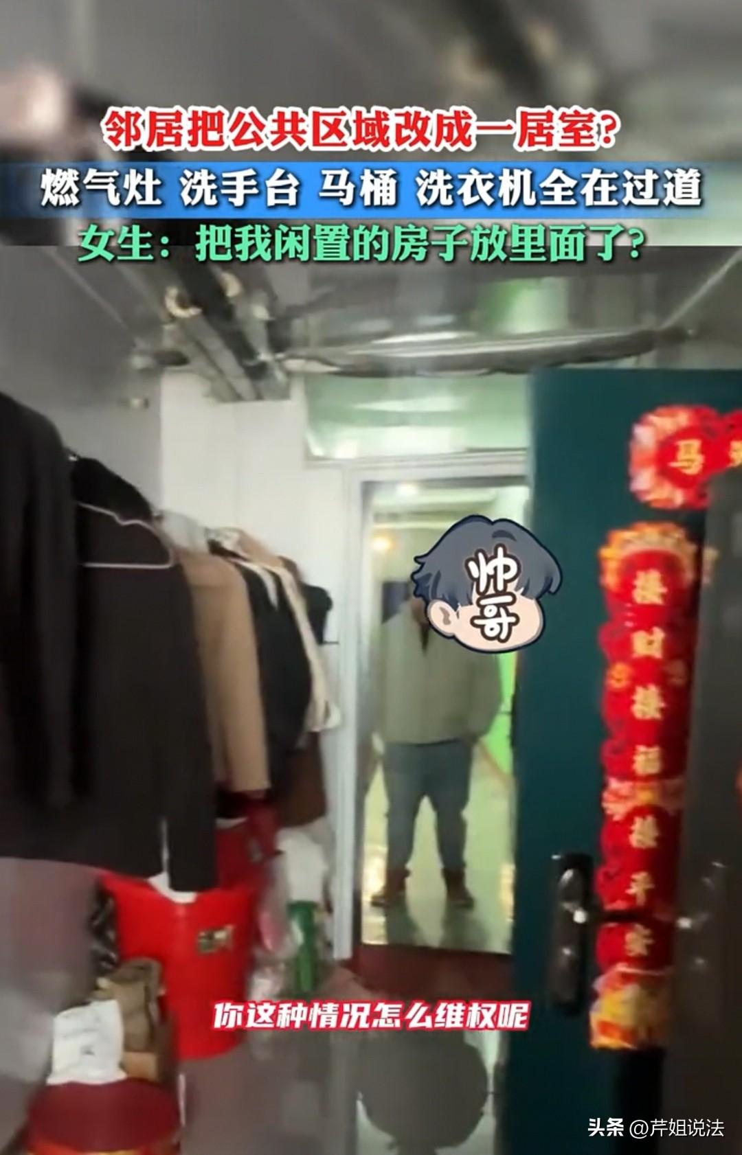 内蒙古,邻居把过道改成了厨房和卫生间,还把女子的闲置房子圈了进去,所以女子进屋还得经过对方同意,不然对方不开门,女子就无法进入自己的房子内。她向大家求助,这种情况该如何维权? 素材来源于:牟视大观 女子以前在公寓这边住,后来有了新住处,公寓这套房子就一直闲置。她想着房子租给别人怕弄坏,所以没打算出租,只是把门锁上,让房子空着。 不过她还是会隔三差五过来看看,毕竟是自己的房子,偶尔过来打扫卫生、擦擦窗子,也算是一份心意。 可这次过来间隔时间有点久,刚一上楼就发现不对劲,怎么找不到自己房子了? 她以为自己走错了,反复确认楼层确实是这一层,可环境怎么变化这么大? 仔细一看,有一户人家居然把她房门外的过道圈起来了,用砖砌了墙,还装了防盗门。她确定自己的房门就在这堵墙里面,对方圈占过道,根本没和她打过招呼。 她敲开邻居家门,问墙是不是他们砌的。对方说是。 看到邻居理直气壮,女子也生气了,说你砌墙撞门,我怎么进去?对方却说,你来的时候我给你打开就是了,这有什么麻烦的。 女子压着火,想先进去看看情况,把事情弄清楚再商量。可让她万万没想到的是,墙里面不仅不是简单隔断,还放满了东西。 里面摆了燃气灶、洗手台、马桶、洗衣机等,厨房和卫生间的设施一应俱全。 这一幕把女子吓坏了,也惊呆了。对方竟是趁她不在,把公共过道改成了私人小房间,关键是把她的家门圈在了里面,这简直是不让她回家。 女子本以为只是一堵墙或堆点杂物,没想到直接改成了厨卫,她忍无可忍,当场拍下视频。 她也很头疼,这种情况该怎么维权?对方花了钱改造,肯定不会好好协商。她工作忙,不想闹矛盾,自己又不常住,就算想出租,现在这样也没法租,和邻居关系闹僵,租客来了也容易起纠纷,最后还得找她。 她非常纠结,到底是撕破脸让对方立刻整改,还是直接找消防部门责令搬离? 但不管怎么做,都要和邻居正面接触,以后不管出租还是自住,都不好相处。她只想和平相处,可对方完全不顾及她的感受,私自把公共区域占为己有。 不少人都说,邻居能做到这一步,根本没把她当邻居,只把她当麻烦。不起诉、不维权,只会留下后患,让对方更加肆无忌惮。 《住宅室内装饰装修管理办法》第五条:禁止将没有防水要求的房间或者阳台改为卫生间、厨房间;禁止擅自占用、改动公共通道。 本事件中,邻居擅自占用公共楼道砌墙、加装防盗门,并将公共区域改造成厨房、卫生间,已严重侵犯女子的房屋所有权与相邻通行权,同时违反消防与物业管理相关规定。 公共楼道属于全体业主共有,任何业主不得私自圈占、改造,更不能封堵他人房屋唯一出入口。邻居以“开门放行”为由限制女子进入自有房屋,属于典型的侵权行为。 女子有权要求邻居立即拆除违建、恢复通道原状、保障正常通行。 若协商无果,女子可向物业、社区、城管、消防部门投诉举报,由相关部门责令整改、处罚; 也可直接向法院提起民事诉讼,主张排除妨害、恢复原状,并可要求赔偿因无法正常使用房屋造成的损失。 拖延忍让只会让侵权行为持续,及时依法维权才能彻底解决问题,避免后续更大纠纷。 对于此事,大家如何看?
