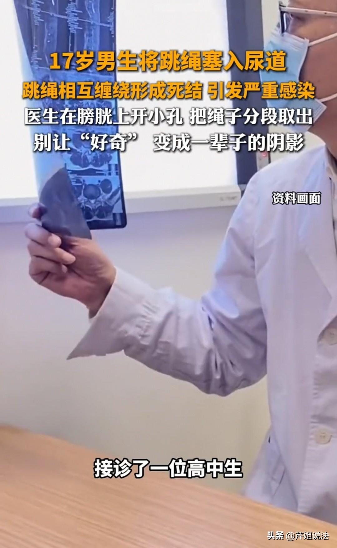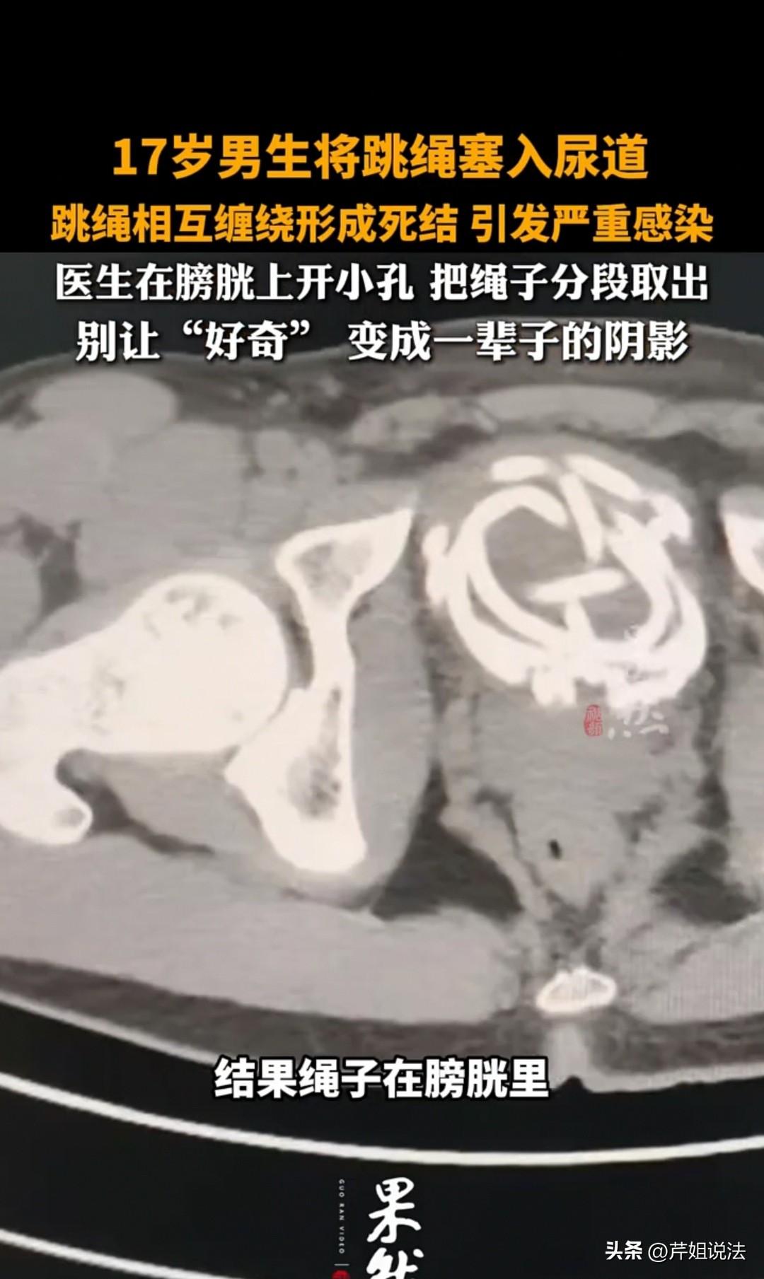扬州,17岁的高中生,把橡皮绳塞进尿道,结果绳子在体内打了结,无法取出,最后只能求助医生。医生赶紧在膀胱处开了小孔,才将橡皮绳取出。医生提醒家长,青春期孩子应提前做好生理引导,不要因好奇引发严重后果,否则悔之晚矣。 素材来源于:齐鲁壹点 男孩读高中,17岁,正处于青春期,身体逐渐发生变化,但缺乏相关生理知识,羞于表达,也不愿向家长求助。他每天除了学习,只能自己胡乱揣摩。 出于强烈好奇,加上正好有跳绳用的橡皮绳,他突发奇想,把绳子塞进尿道,想看看会有什么反应。本以为塞进去能顺利拿出来,没想到绳子在体内打了死结,根本取不出来。 他尝试了很多办法,都没能把绳子取出,身体也开始出现不适,这才不得不告诉家长。 家长得知后十分紧张,这种情况从未遇到过,即便自己小时候贪玩,也从未做过这样的事。于是赶紧把孩子送到医院。 医生看到情况也很意外,接诊过不少青春期孩子的荒唐行为,但从未见过这种情况。医生立刻安排拍片检查,发现膀胱内的橡皮绳较长,缠绕在一起,打成了死结。 随后医生制定方案,在男孩膀胱处开了一个小孔,将橡皮绳成功取出。孩子家长终于松了口气,孩子则满脸通红,十分羞愧。 其实医生和家长都明白,这么大的孩子缺乏经验,只是出于好奇才做出这样的举动。 医生也告诫所有男孩家长,不要等事情发生后再补救,这类问题应提前做好生理知识引导,避免孩子自行尝试、盲目探索,一旦造成严重身体伤害,后果不堪设想。 网友们纷纷表示,调皮的孩子真是让家长操心,做什么不好,偏偏做出这么出格又危险的事,一旦把身体伤了,就是一辈子的事。 也有网友认为,孩子并没有错,青春期身体发生变化,在缺乏知识的情况下,孩子会本能地探索,就像探索课本知识一样。 这件事大家并没有责怪孩子,也不认为孩子的行为有多恶劣,只希望在青春期阶段,生理课能多讲一些相关内容,或者把男生集中起来进行科普,避免孩子因身体变化产生恐慌、焦虑,做出家长和孩子都无法控制的行为。 那么,类似事件中,家长和学校的教育存在哪些缺失呢? 《未成年人保护法》第三十条:学校应当根据未成年学生身心发展特点,进行社会生活指导、心理健康辅导、青春期教育和生命教育。 《民法典》第1188条:无民事行为能力人、限制民事行为能力人造成他人损害的,由监护人承担侵权责任。监护人尽到监护职责的,可以减轻其侵权责任。 本案中,17岁高中生属于限制民事行为能力人,因缺乏生理知识、青春期好奇导致自身身体受损,虽不涉及他人侵权,但反映出家庭与学校在青春期教育、监护与管理上的不足。 根据法律规定,学校负有开展青春期教育、生理健康指导、生命安全教育的法定义务,若长期缺失相关教育,属于未尽到教育管理职责。 家长作为法定监护人,应关注孩子身心变化,及时进行生理、心理引导,保障孩子健康安全。 此类意外虽系孩子自主行为,但根源是教育缺位。 若因教育缺失导致孩子发生严重人身伤害,家长未尽监护义务、学校未尽教育职责,在后续相关纠纷中可能被认定存在过错。 因此,加强青春期生理教育、生命教育、家庭沟通,既是责任,也是法律要求,能有效避免类似危险事件发生。 对于此事,大家如何看?