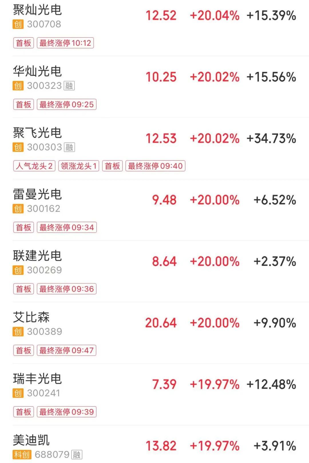 【#MicroLED概念集体爆发#】 3月5日,市场早间震荡走强,创指盘中涨超3%。截至午间收盘,沪指报4116.77点,涨0.84%;深证成指报14150.45点,涨1.67%;创指报3241.17点,涨2.43%。沪深两市半日成交额1.55万亿元,较上个交易日缩量918亿元。MicroLED概念股集体爆发,华灿光电、亚世光电、国星光电等多股涨停。网页链接