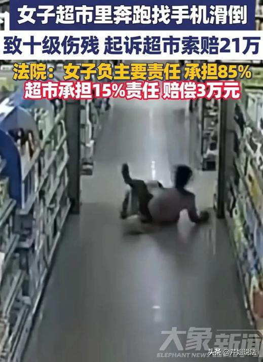 江苏,张阿姨带孙子逛超市时发现手机忘水果区,心急火燎往回跑,结果脚底打滑摔成10级伤残。张阿姨觉得是超市地面有水致自己摔倒,家属便起诉超市索赔21万。超市喊冤,称地面干净,是张阿姨跑太快。庭审时超市拿出监控,法院审理后认为超市安全管理有瑕疵,判其担15%责任,赔3万。这判决让人意外,张阿姨自己不注意,超市却要担责。 张阿姨本来是带孙子散心,没成想把自己摔得这么重。 10级伤残可不是小问题,后续康复得花不少钱,还得有人专人照顾。 家属一合计,觉得这事不能就这么算了,毕竟是在超市摔的,超市总不能一点责任没有,索性直接起诉,一张嘴就索赔21万。 这金额一出来,不少人都直呼离谱,说家属有点狮子大开口,甚至有人说这是想讹超市一笔。 超市也觉得自己比窦娥还冤,纯属大冤种。 超市负责人说,超市每天都有人定时拖地,地面干净得能反光,根本不可能有水。 还说监控拍得明明白白,是张阿姨自己心急,跑太快没注意脚下,才摔下去的,跟超市一点关系都没有。 其实都能理解张阿姨,手机忘在水果区,换谁都得着急。 现在的老人,手机里存着儿女的电话、养老钱的余额,还有平时拍的孙子照片,那可是宝贝得很。 当时张阿姨光顾着往回跑,压根没顾上看脚下。 据后来庭审时的监控显示,她跑的时候步子迈得很大,脚下一滑,整个人直接往前扑,重重摔在地上,看着都疼。 摔了之后,张阿姨半天没爬起来,孙子也吓哭了。 周围的顾客赶紧帮忙喊来了超市工作人员,又打了120,把张阿姨送去及时进行了救治。 诊断结果出来,是10级伤残。 医生说,后续得长期康复,而且可能会留下后遗症,以后走路都得小心。 张阿姨躺在病床上觉得,要是超市地面没有水,自己再急也不会摔得这么重,超市必须负责到底。 家属也跟着添火,说超市就是不负责任,明明地面有水不清理,也不贴个警示标志,纯属摆烂式管理。 超市这边也不甘示弱,拿出了完整的监控录像,还有保洁人员的工作记录,证明当天地面确实是干净的,保洁每小时都会巡查一次,根本没有水渍。 双方吵得不可开交,谁也不肯让步,没办法,最终只能闹到法院。 庭审时,双方都拿出了自己的证据。 张阿姨这边,有医院的诊断证明、伤残鉴定报告,还有当时在场顾客的证言,说好像看到地面有点湿。 超市除了监控和保洁记录,还有工作人员的证言,说当天水果区没有洒水,也没有顾客不小心打翻水的情况。 超市作为经营场所,有法定的安全保障义务。 据《民法典》第1198条第一款规定,宾馆、商场、银行、车站等经营场所、公共场所的经营者、管理者,未尽到安全保障义务,造成他人损害的,应当承担侵权责任。 说白了就是,超市得保证顾客在里面购物时的安全,不管是地面、设施,还是人员管理,都得做到位。 哪怕地面没有明显水渍,但只要安全管理有瑕疵,就得担责。 法院审理后认为,超市虽然提供了监控和保洁记录,但水果区是容易遗留水渍的地方,超市没有在该区域设置警示标志,也没有安排专人实时巡查,属于安全管理有瑕疵,没有尽到完整的安全保障义务。 张阿姨自己因为着急找手机,在超市内快速奔跑,没有注意自身安全,对自己的摔倒也有很大责任。 据《民法典》第1173条规定,被侵权人对同一损害的发生或者扩大有过错的,可以减轻侵权人的责任。 最终法院判决,超市因安全管理有瑕疵,承担15%的赔偿责任,赔偿张阿姨3万元。 张阿姨自身存在过错,承担85%的责任,剩余损失由其自行承担。 可能有人觉得,超市太冤了,明明地面干净,还要赔钱。 但其实不是这样,安全保障义务不是一句空话,超市不能只做到表面干净,还要考虑到潜在的风险。 水果区经常有人挑水果,难免会有水果汁液滴落,哪怕当时没有水渍,也应该设置警示标志,提醒顾客小心地滑。 这就是超市的疏忽,也是它需要担责的原因。 反过来,张阿姨再着急找手机,也不能在超市里奔跑,超市是人流量大的地方,奔跑本身就有安全隐患,自己不小心摔倒,肯定要承担主要责任。 其实,这个判决挺合理的,既给了张阿姨一个说法,也没有让超市承担不该承担的责任。 你们觉得这个判决合理吗?你觉得超市应该担责吗?