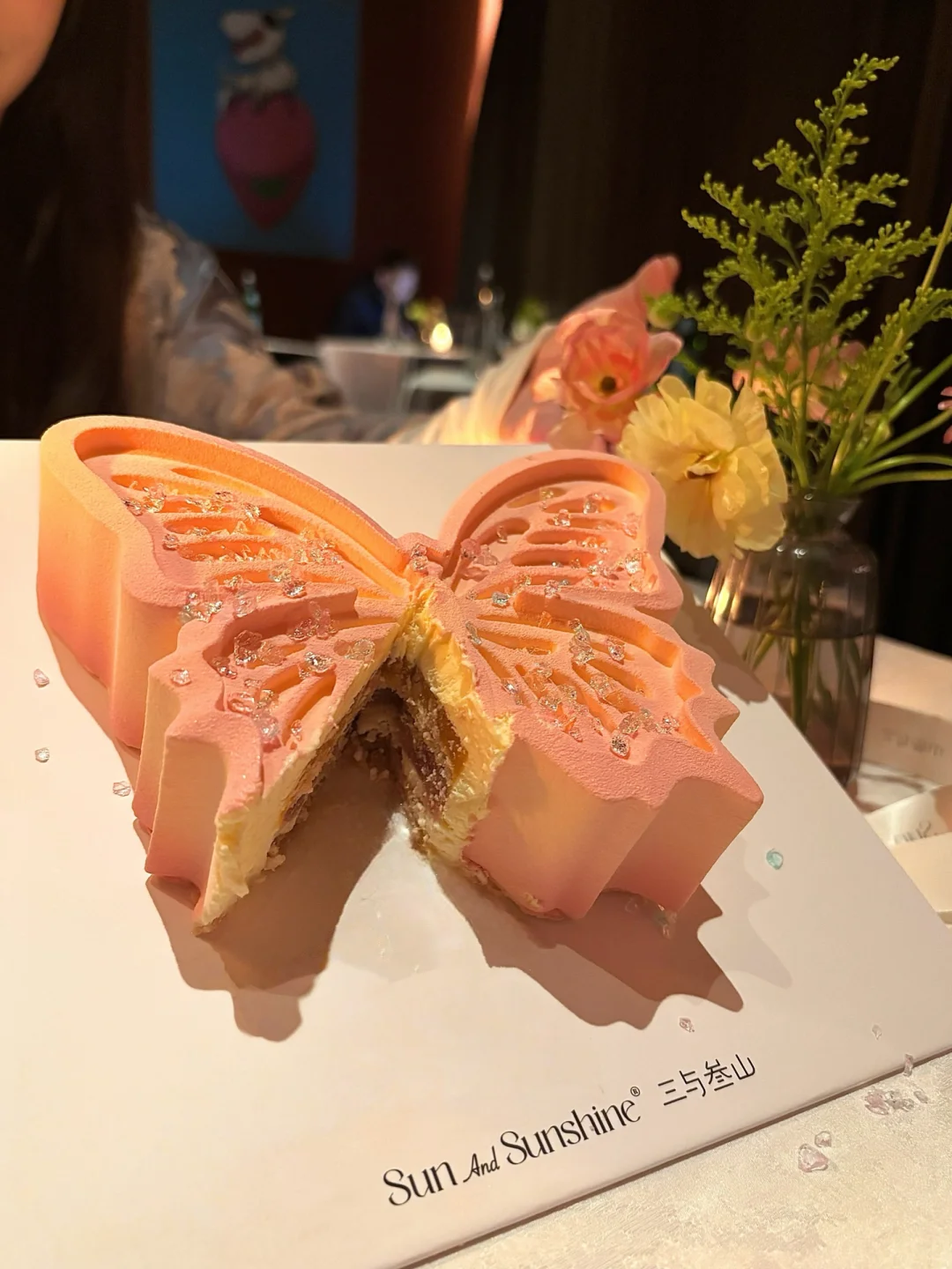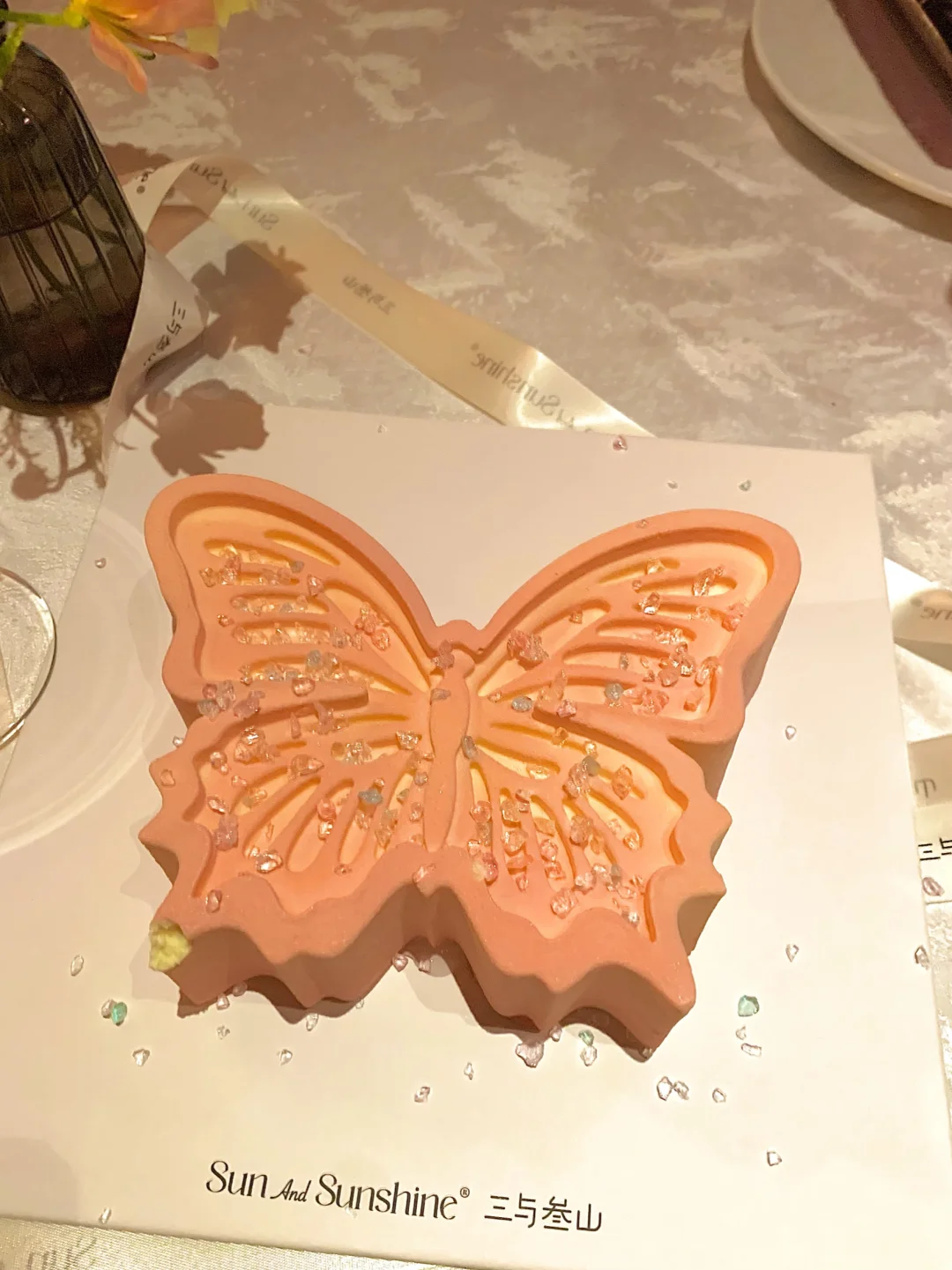 第N次购买三与叁山! 这款粉粉嫩嫩的蝴蝶造型,颜值直接拉满,拍照巨好看,氛围感一步到位。 . 用的都是动物奶油,口感轻盈不腻,入口丝滑又香甜 里面还有清爽夹心,好吃又不齁。 把浪漫和美好都吃进嘴里,愿大家所愿皆成真~ 三与叁山许愿蝶