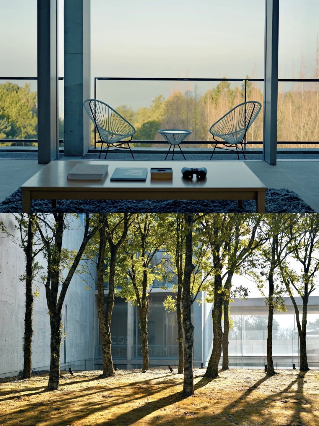 馆内藏着许多作品,和建筑一起呼吸、随光线移动,日光像刀锋也像薄纱,轻轻擦亮墙面与角落,窗外流淌着海的背景音,感受住进自然里的旅程