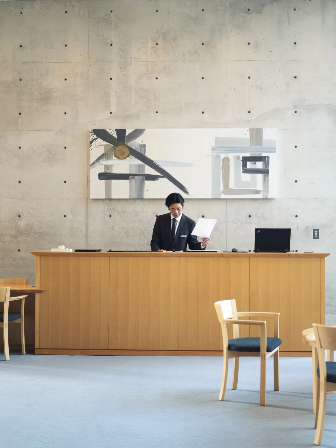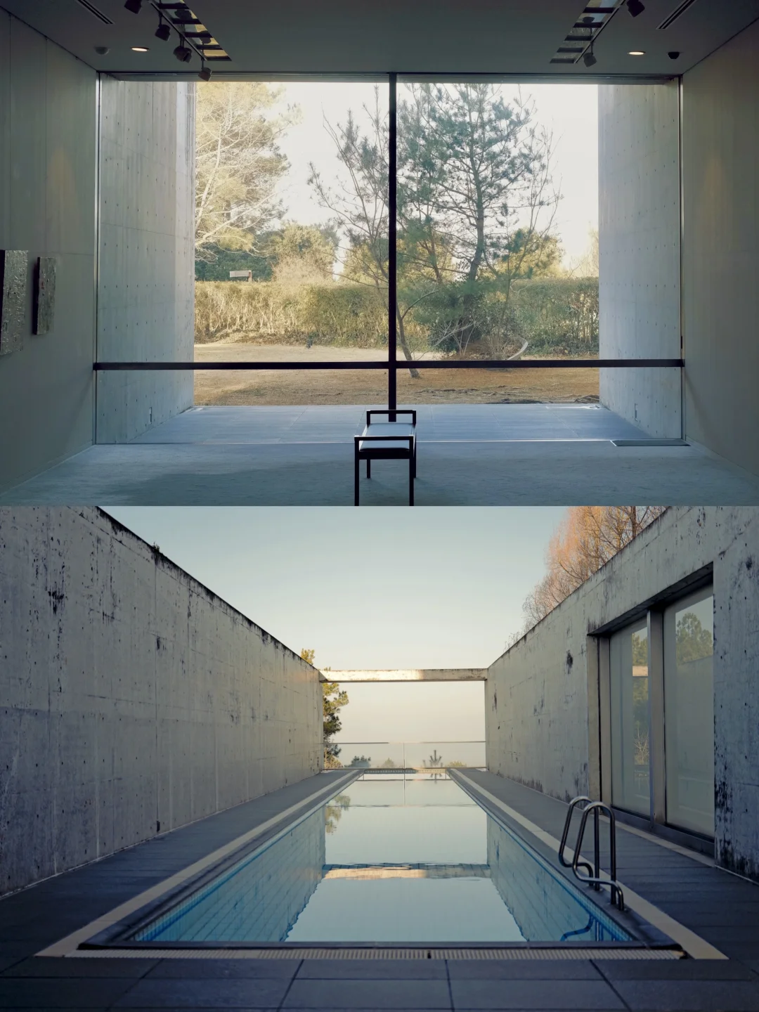 走进来的瞬间,就像把城市的噪音关掉,清水混凝土像一张沉默的纸,只留下光、影与海的呼吸