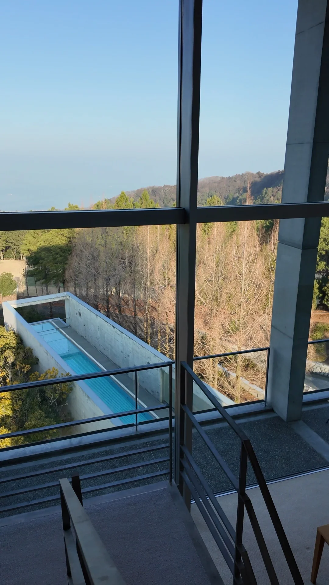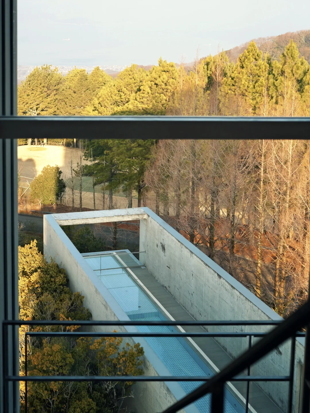 30米无边际泳池像一条被安藤画直的水平线,把天空、建筑与濑户内海缝在同一张画布上。水面复制海平线,天气好的时候,水面和海平线几乎连在一起,随便站一会儿都很出片