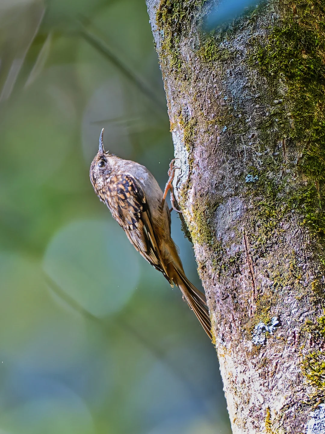 原创拍摄于2026.02 休氏旋木雀,Hume's Treecreeper,雀形目旋木雀科旋木雀属。分布在喜马拉雅山脉至东南亚 ,在我国的滇西可以看到它们,海拔比褐喉旋木雀低一点。 休氏旋木雀有锈色尾巴,让它与分布区内其他旋木雀,比如褐喉旋木雀区分。 旋木雀都很有意思,喜欢沿着树干螺旋上升,寻找昆虫为食物,而他们的背部跟树干完全是一样斑驳的颜色,体型还很小,如果停在树干上根本难以看出,真的是超级好的伪装。 在百花岭的徒步中,看到两次。