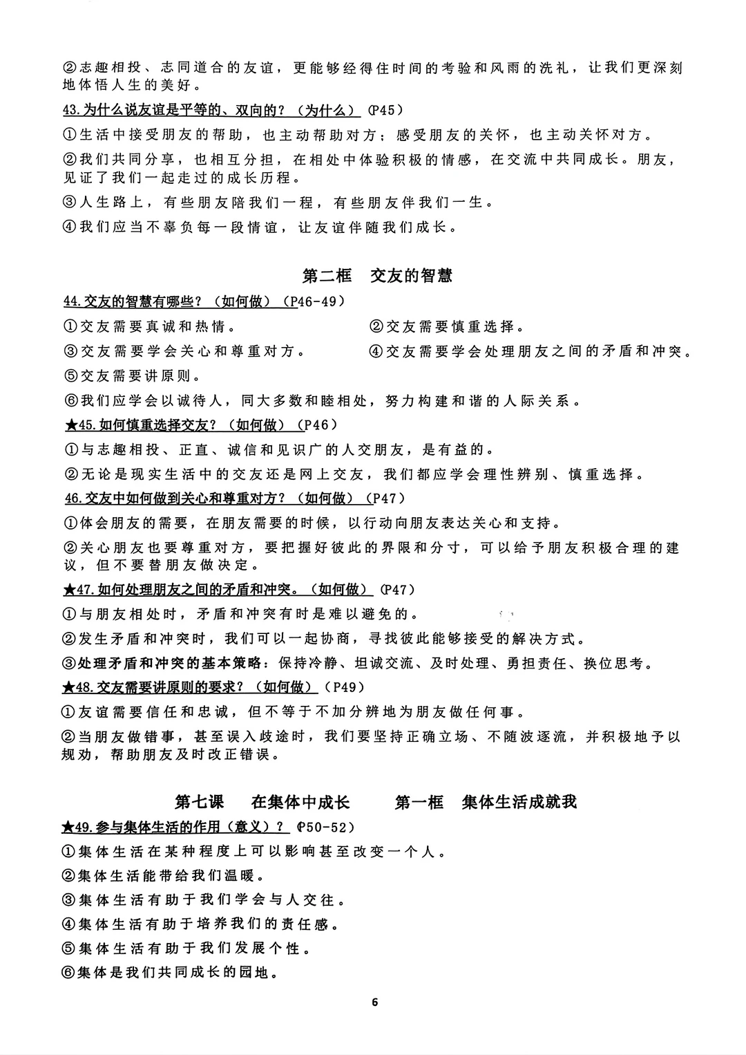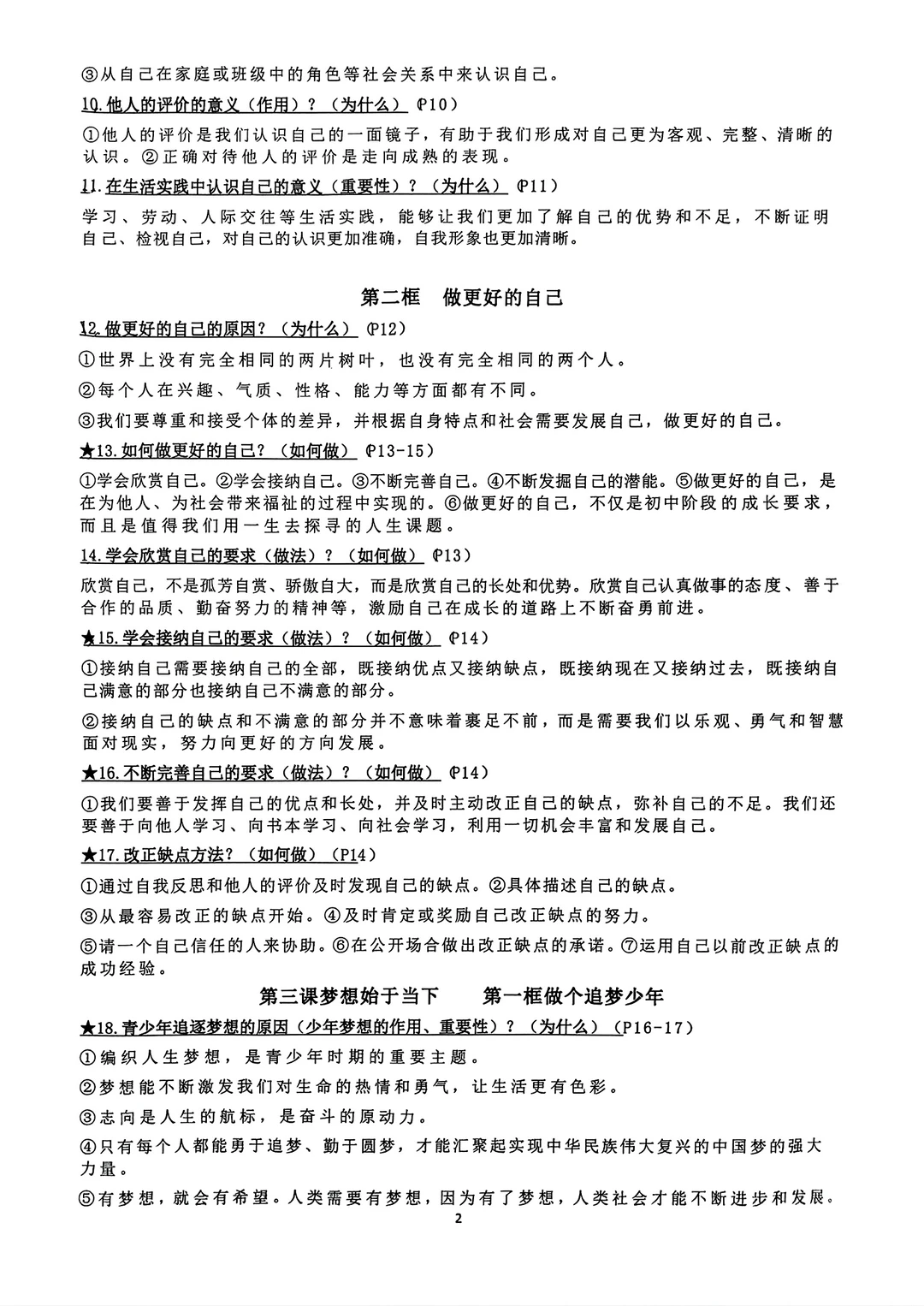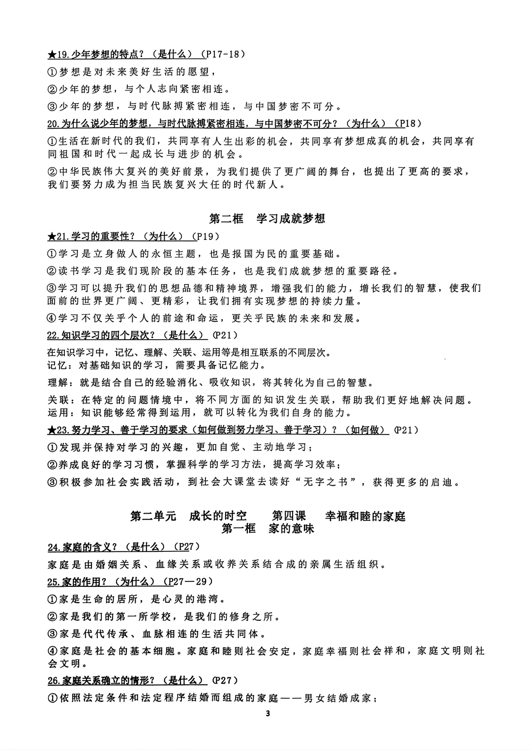 七年级上册道法道德与法治背诵资料2024