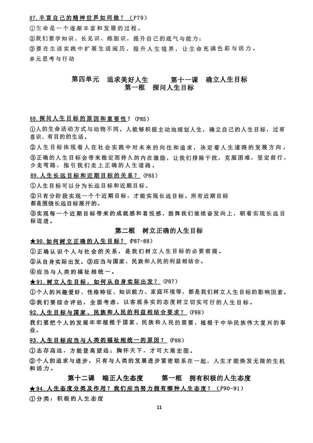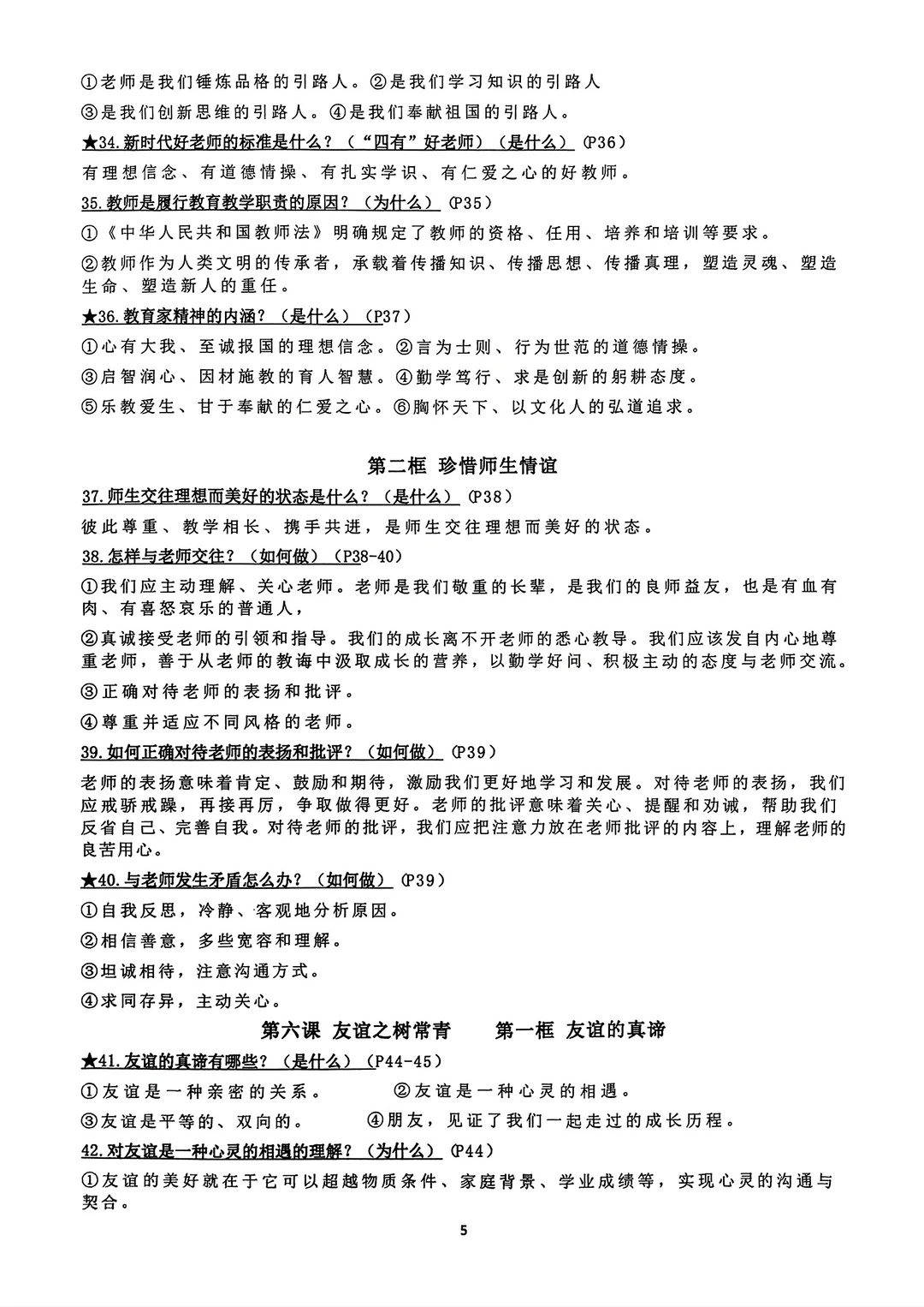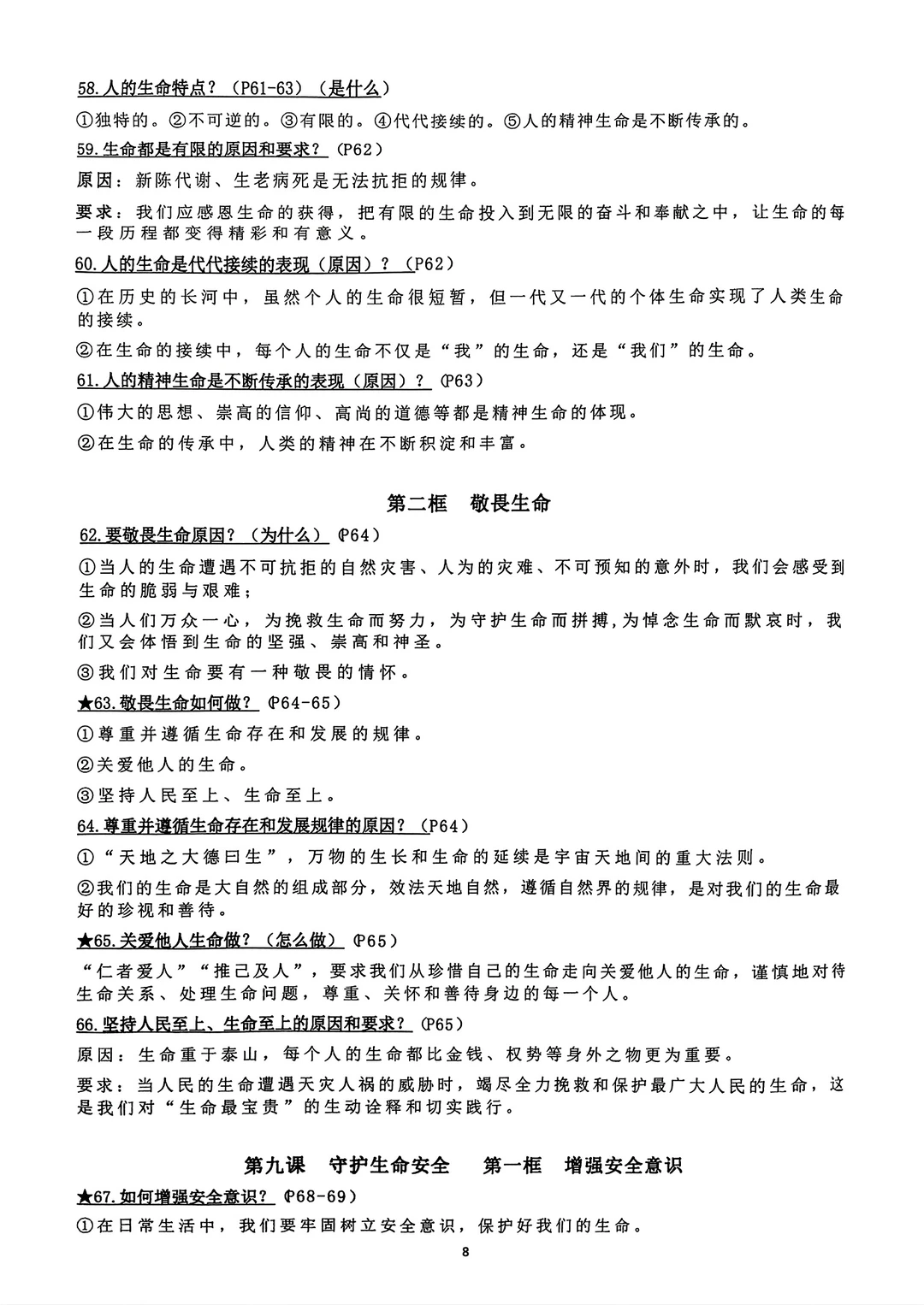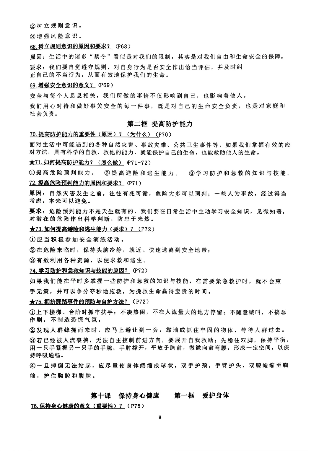 七年级上册道法道德与法治背诵资料2024