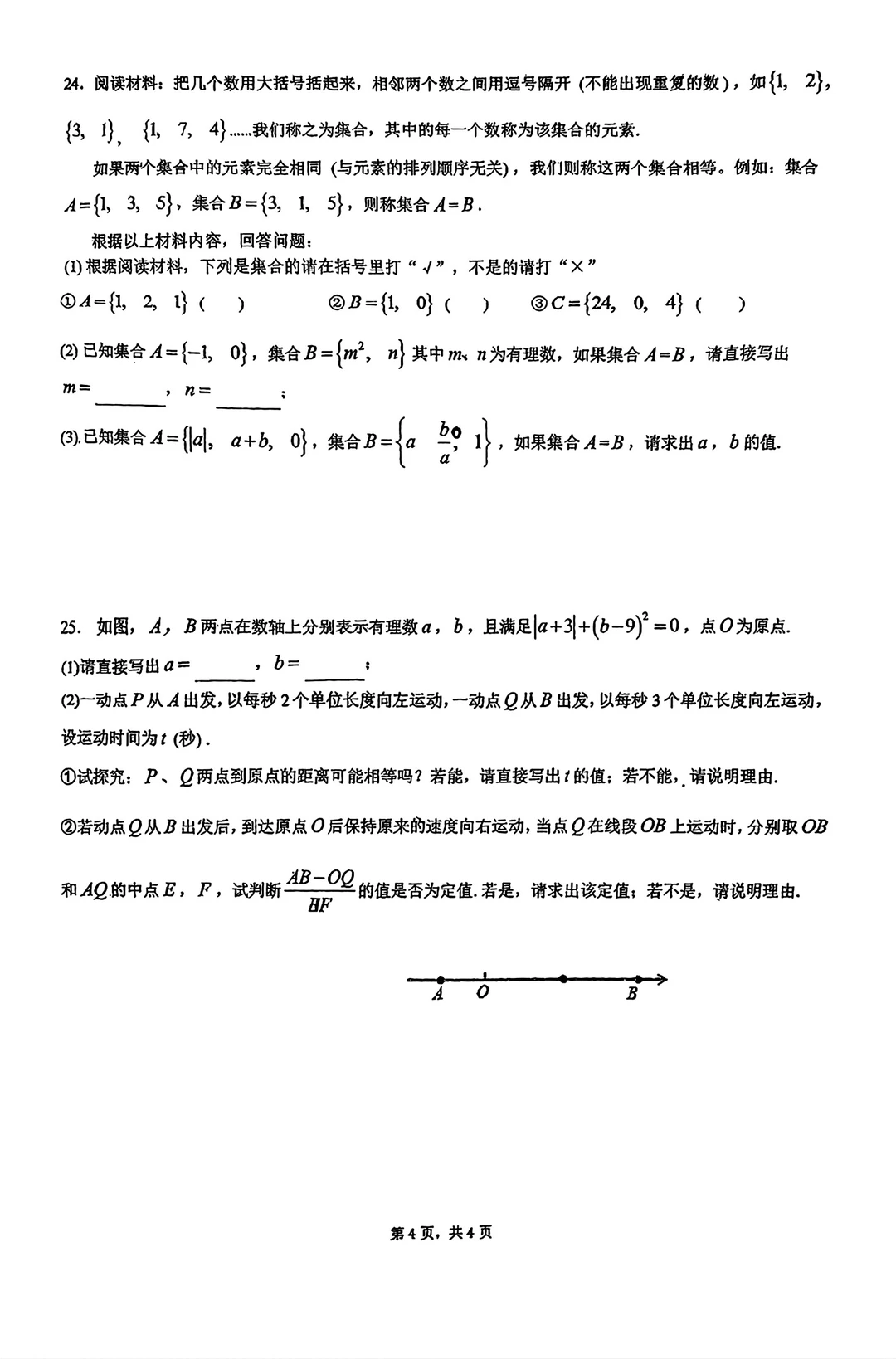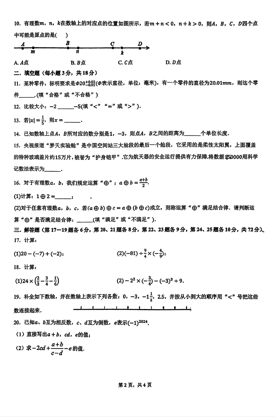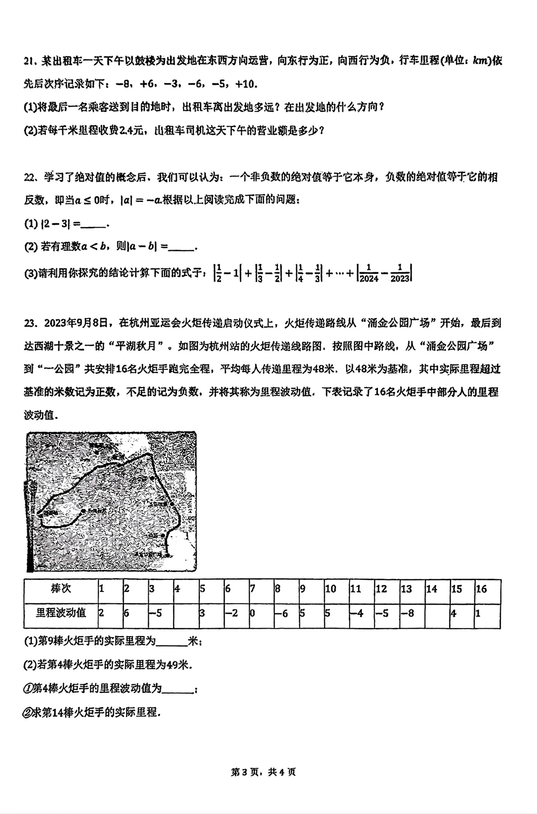 七年级上册数学试卷