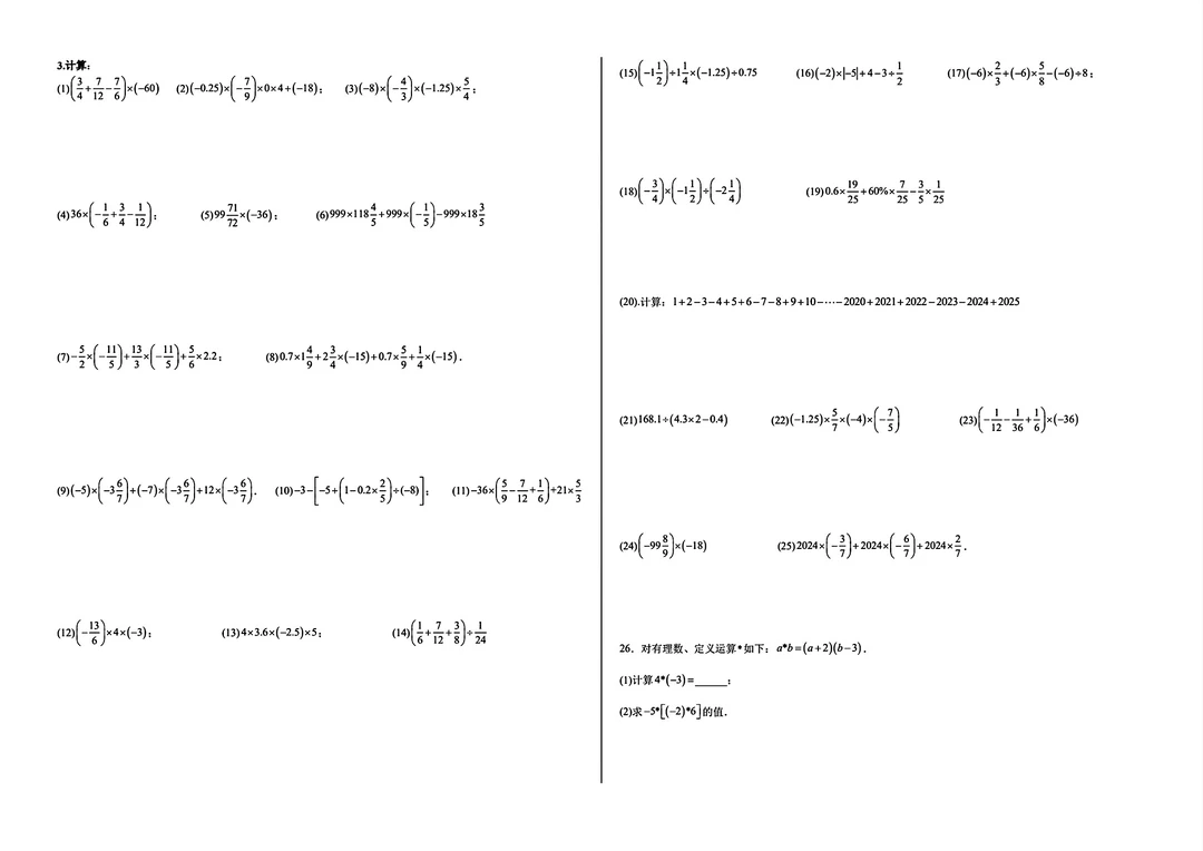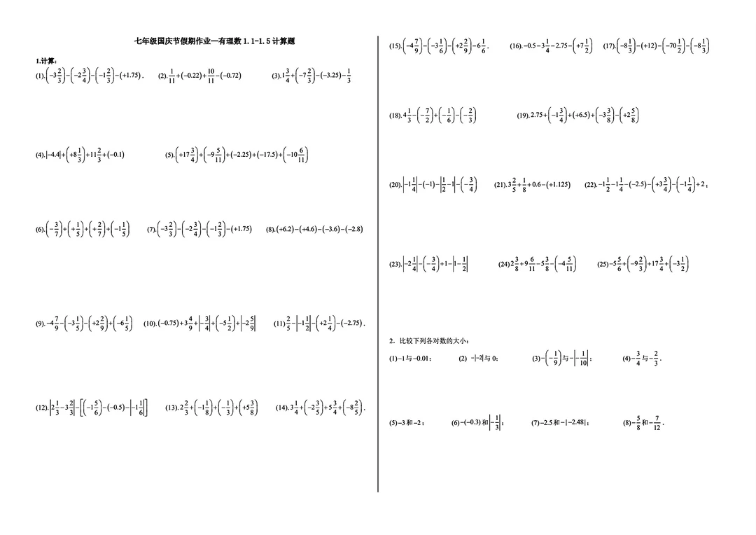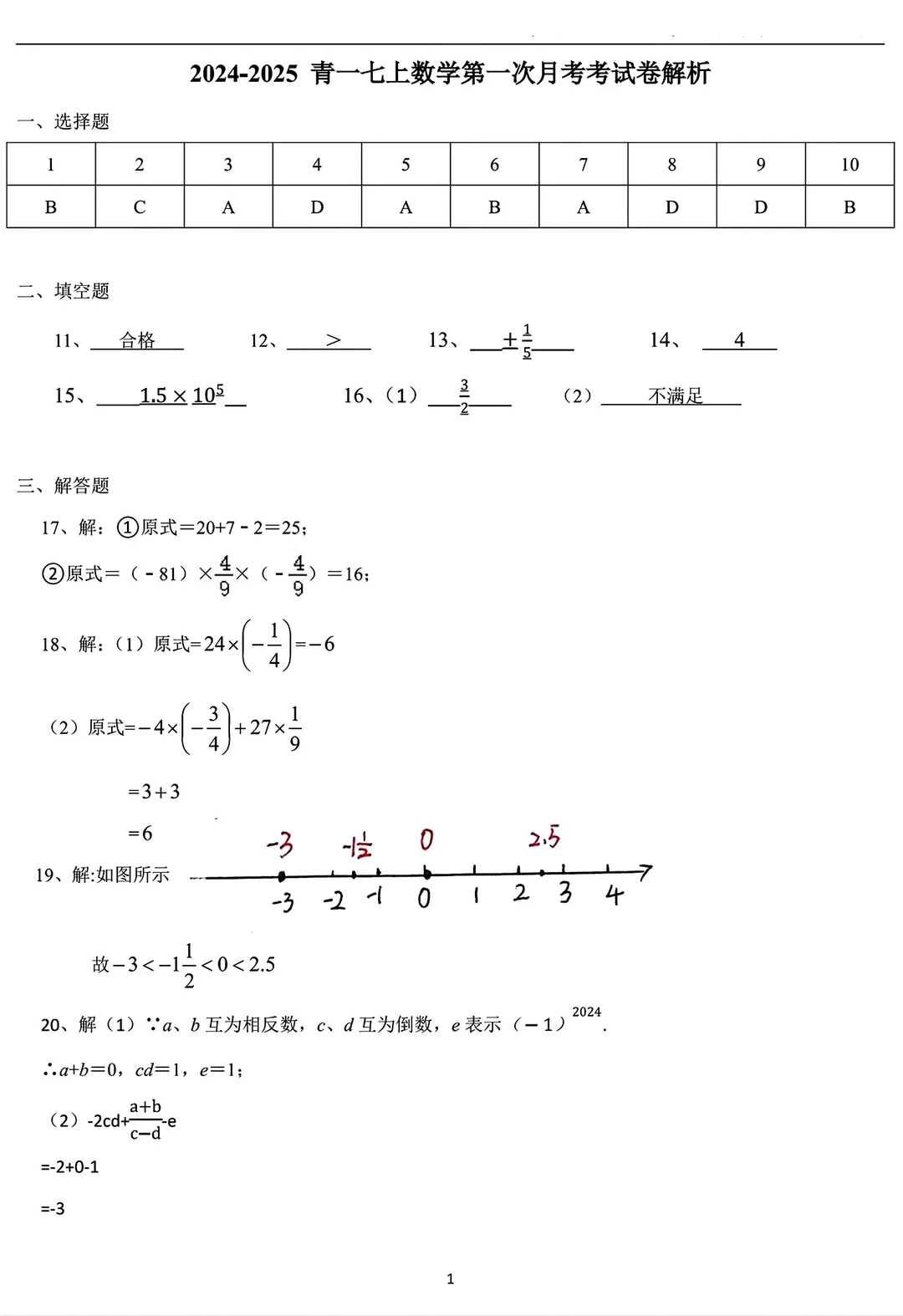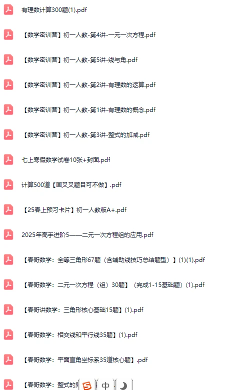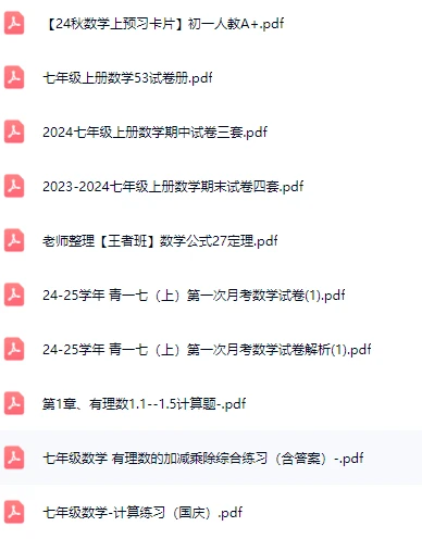 上面图片是24-25学年 青一七(上)第一次月考数学试卷与第1章、有理数1.1--1.5计算题,自己保存下来打印就好,拍一元可以把最后两个图片里提到的全部文档一起发给你,是这两年老师或家长发的全部七年级上册的数学资料。想要更多可进群,经常随机免费发些其它渠道得来的资料。
