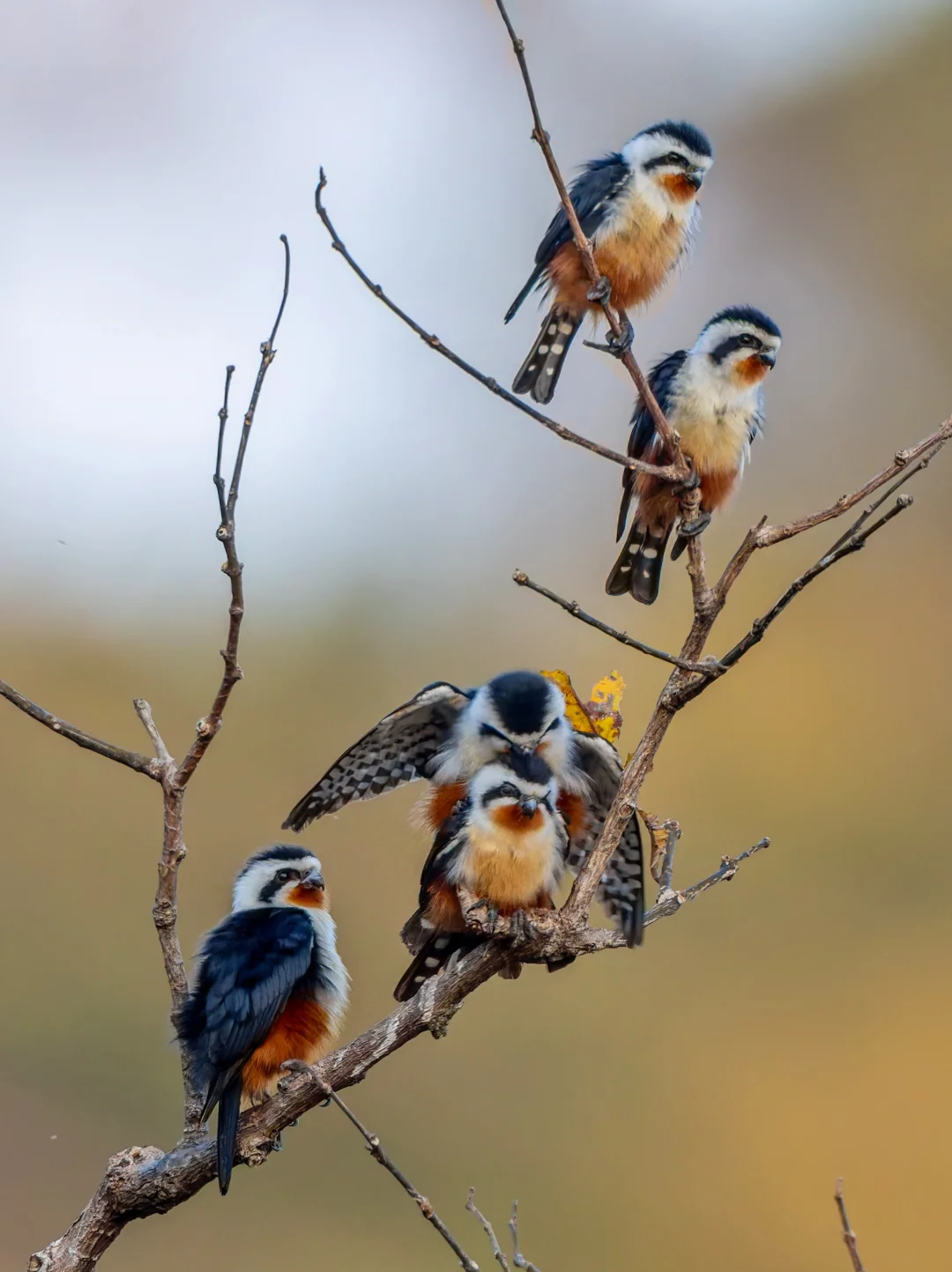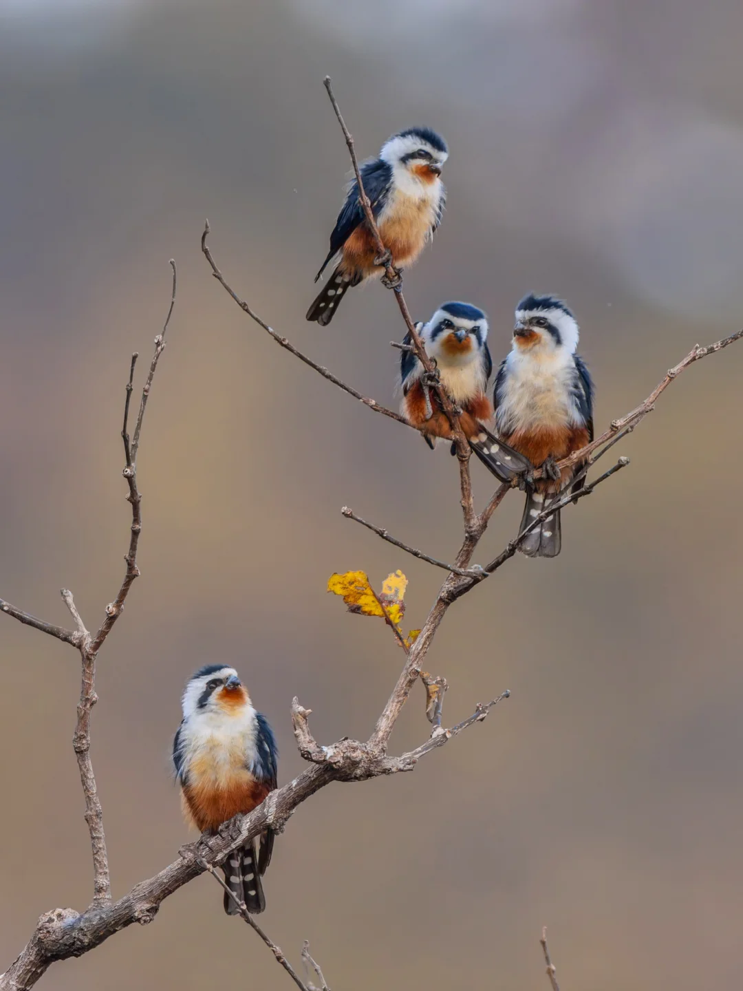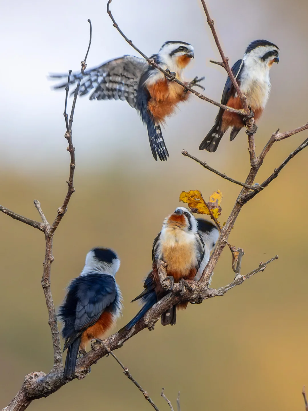 原创拍摄于2026.02 红腿小隼,Collared Falconet,隼形目隼科小隼属。是世界上最小的猛禽之一,和麻雀差不多大小,和白腿小隼是不同的皮肤小可爱。 在盈江,它们看上去在早出晚归时喜欢凑在一起社交,这次竟然有幸看到7只同框p3。当然这个傍晚确实也是红腿小隼们激情之夜,多次的交配场景被拍到都有点害羞了。