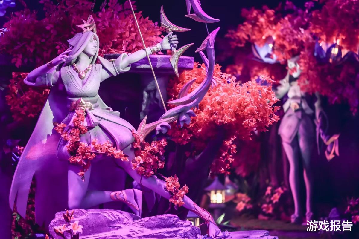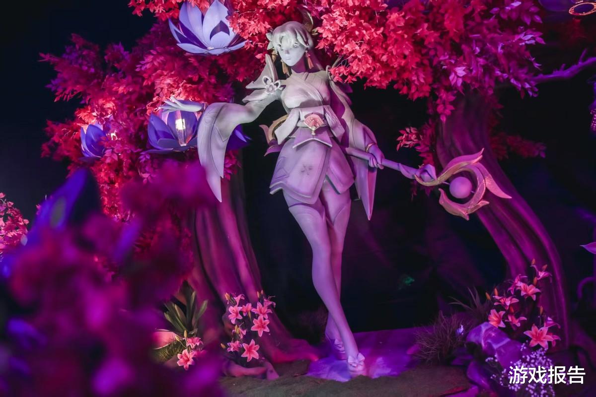待正式进入生日会的会场,虚拟与现实的壁垒仿佛在那一刻被击碎:一尊巨型的“圣堂 灵魂莲华 莫甘娜”雕像映入眼帘!睥睨众人的莫甘娜,甚至隐隐约约能感受到这位堕落天使的压迫感。