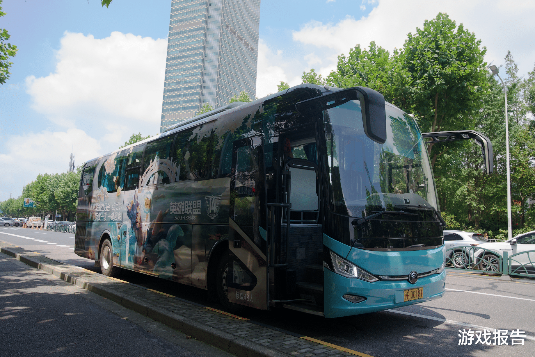 在ChinaJoy的现场,停靠着一辆以“绽灵节”为主题打造的痛车大巴,专门搭载慕名而来的我们直达生日会的“温泉”恢复状态。当大巴行驶在道路上,还有穿着COS服的导游小姐姐提供讲解,与大家分享彼此有关英雄联盟的的点点滴滴。