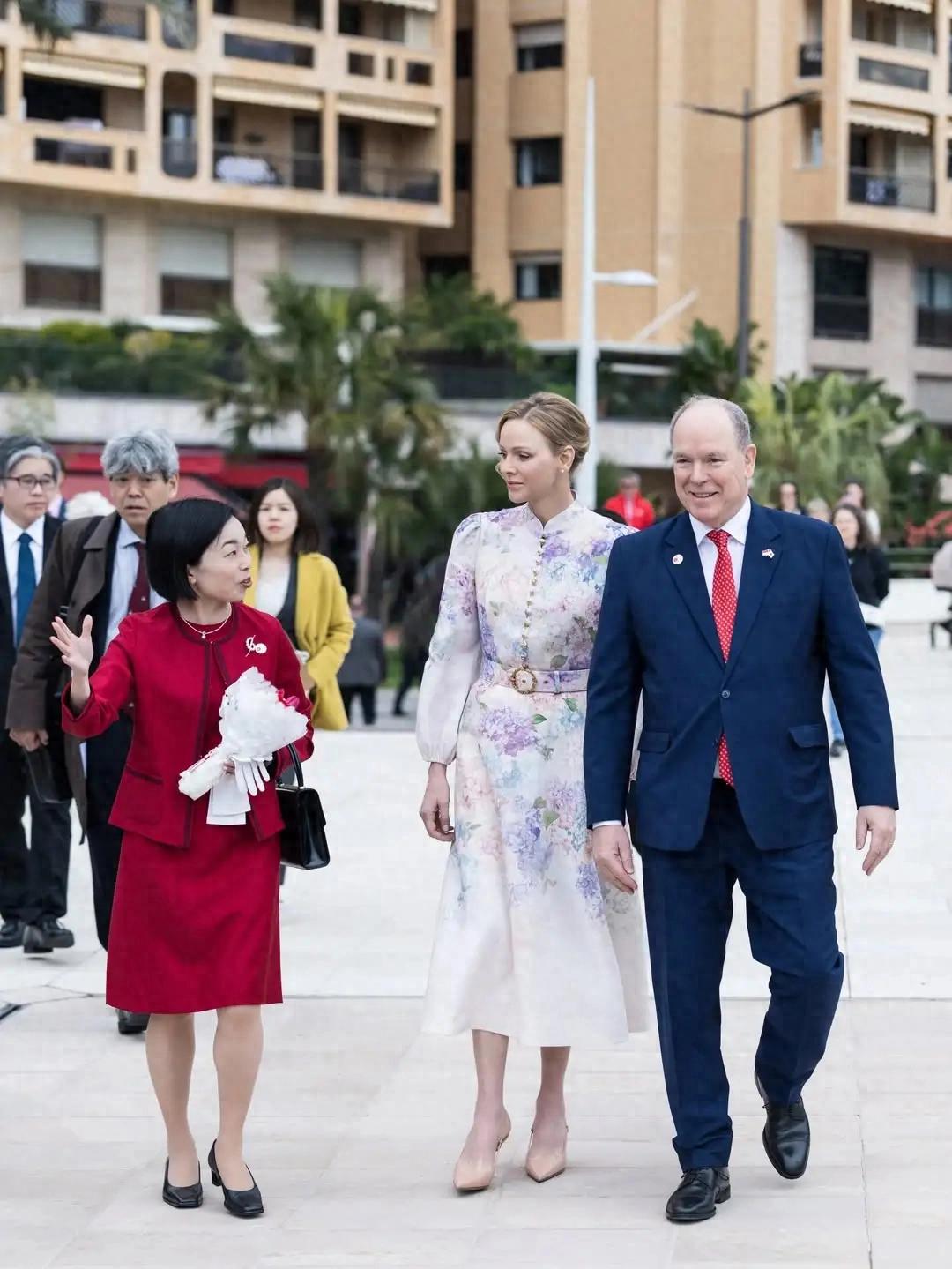 3.25 摩纳哥亲王阿尔贝二世、王妃夏琳和卡洛琳公主出席异国花园重开仪式