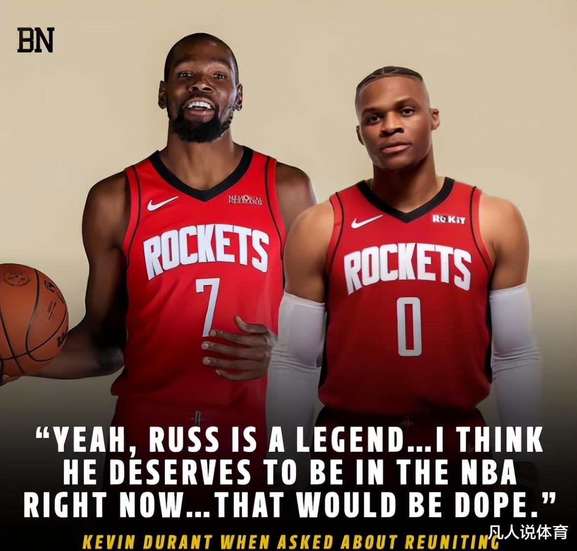 "通常这类事要是真的,动静会很大。但除了网上球迷的讨论,我没听到任何实质性消息," 杜兰特补充道,"威斯布鲁克是传奇,我认为他现在理应留在 NBA,也理应以自己想要的方式告别这个联盟。但这不是我能决定的。"