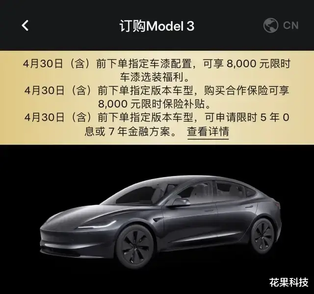 根据特斯拉官网显示,最新的四月份优惠活动已经上线。