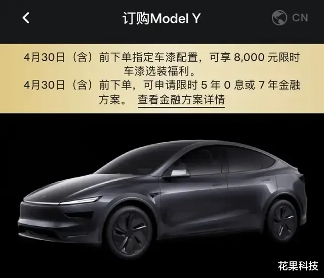 当然,5 年 0 息和 7 年低息的金融方案还是适用于 Mode Y 车型的。