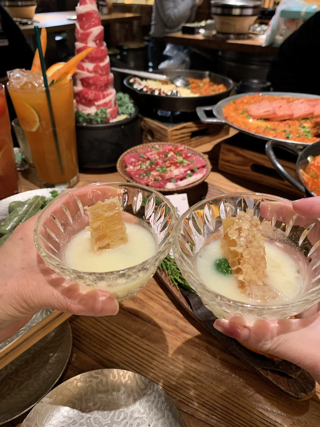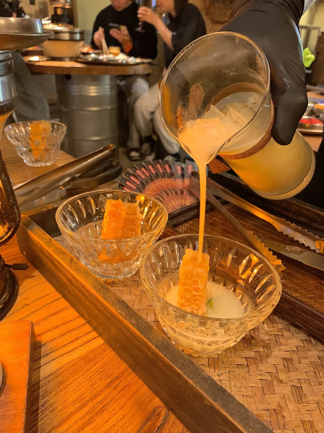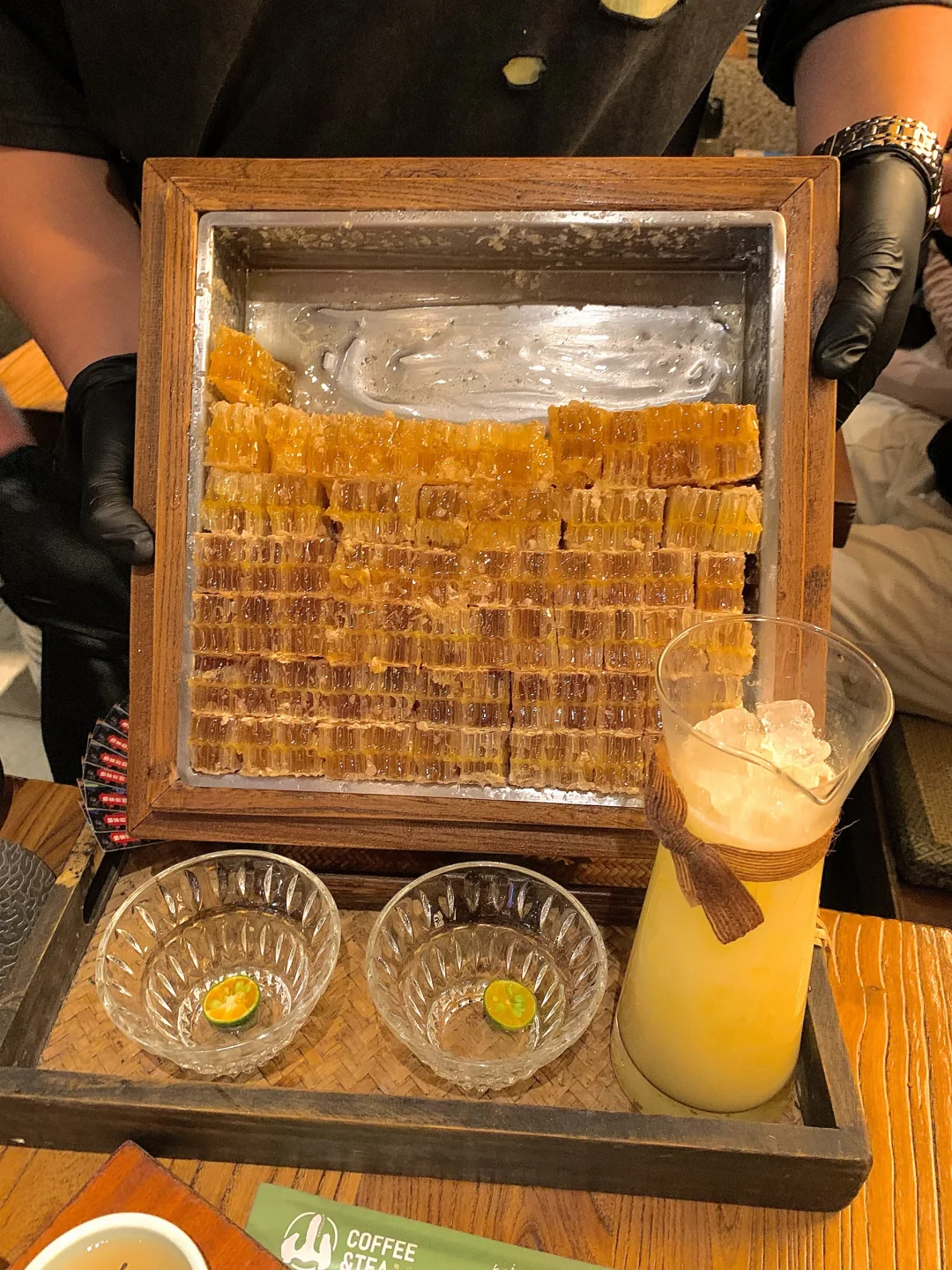 🍃特色蜂巢米酒必喝!整块蜂巢泡在米酒里,甜润顺口、微醺刚刚好,配烤肉超解腻!