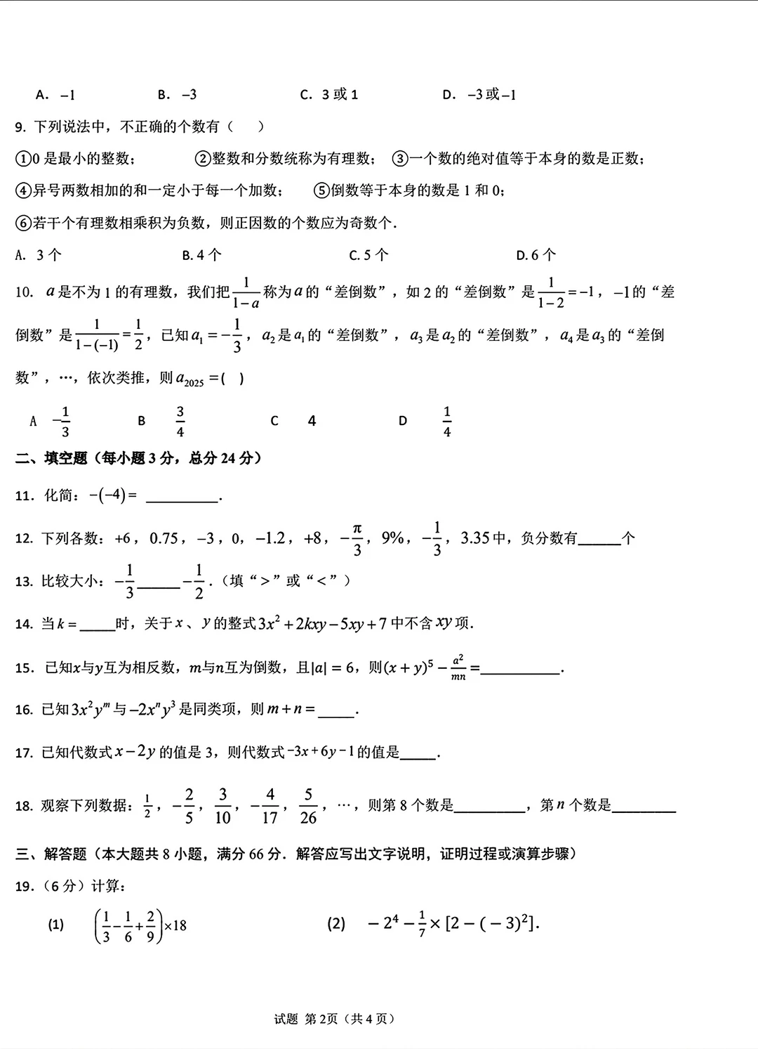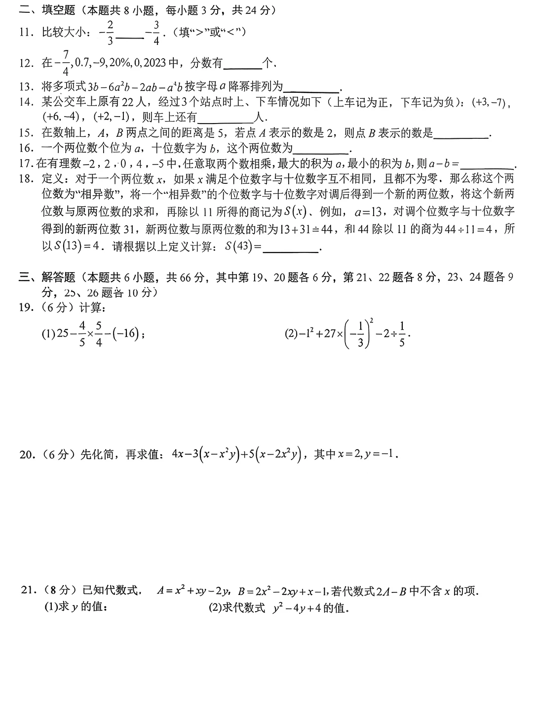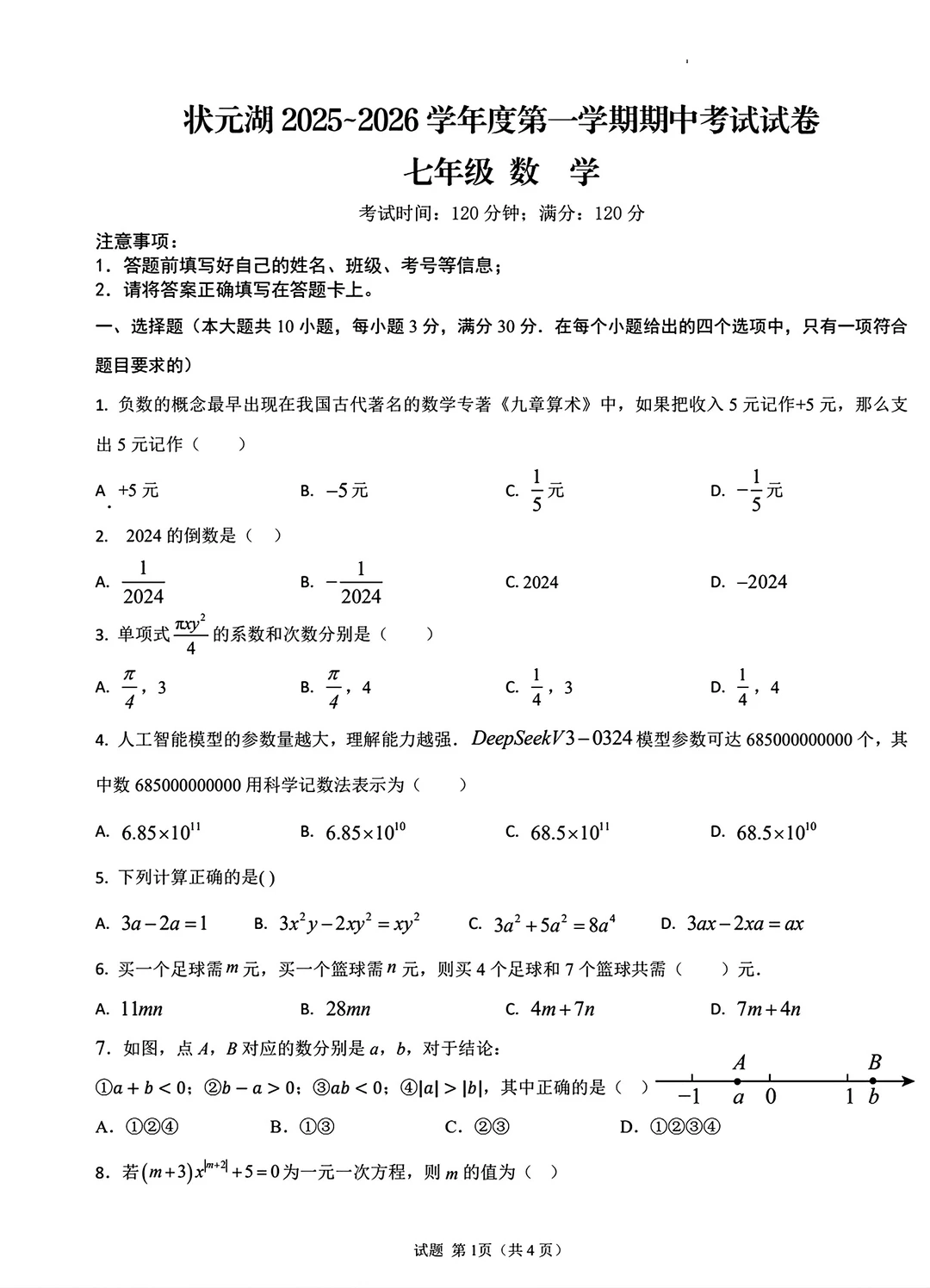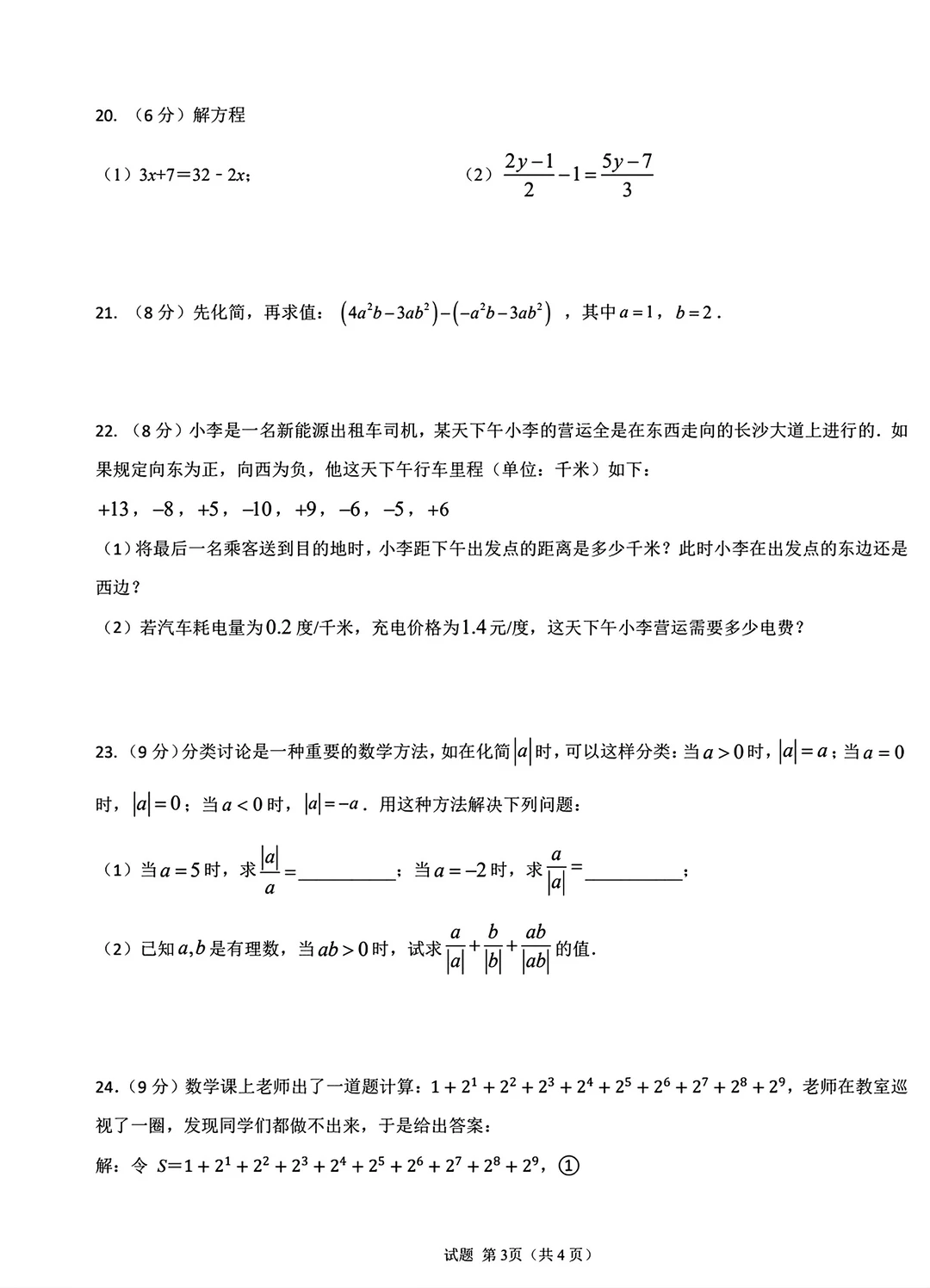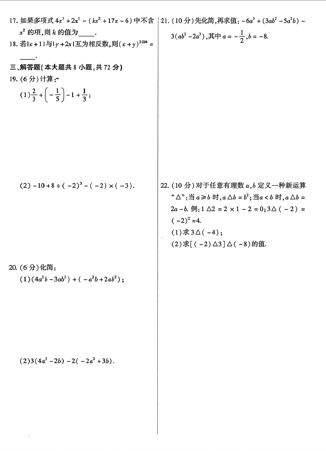 2025七年级上册数学期中考试检测卷三套