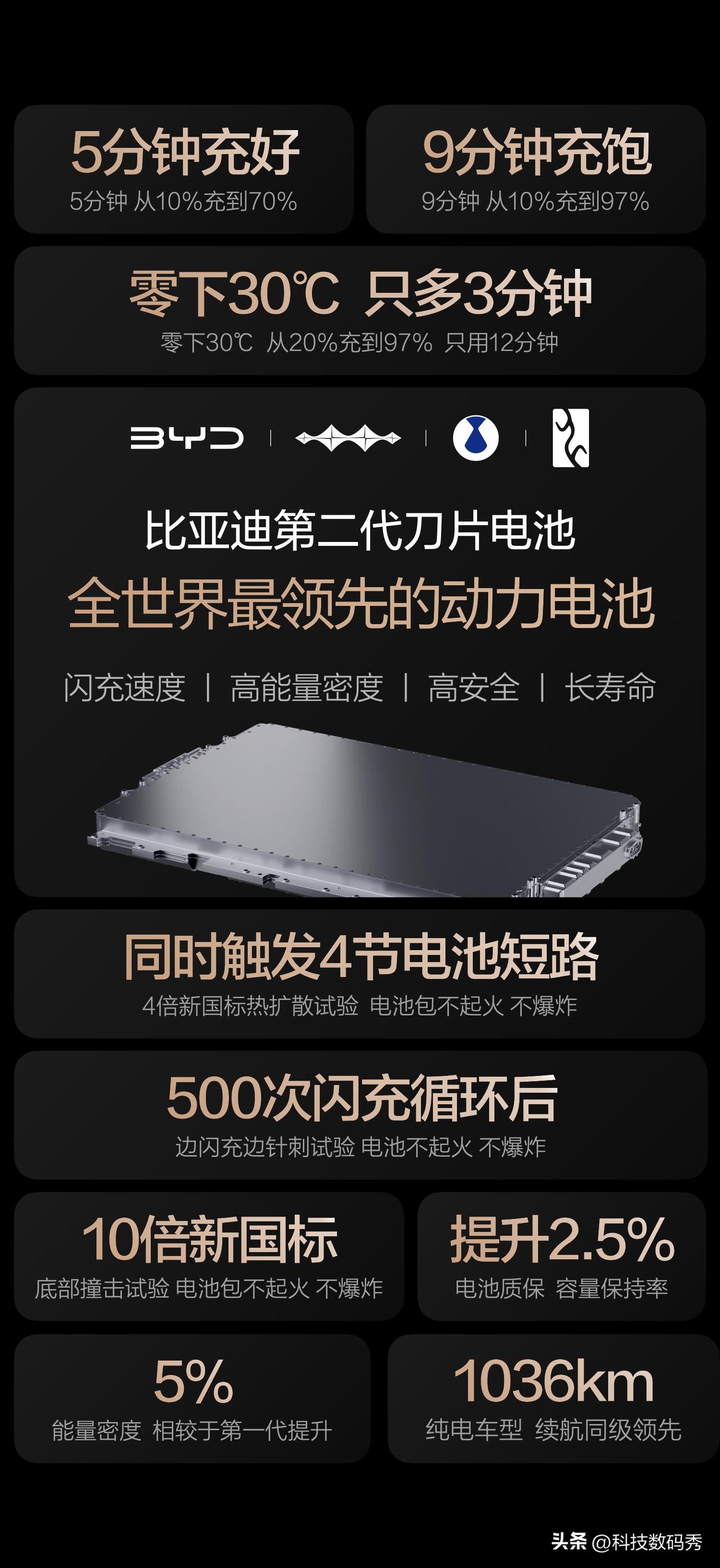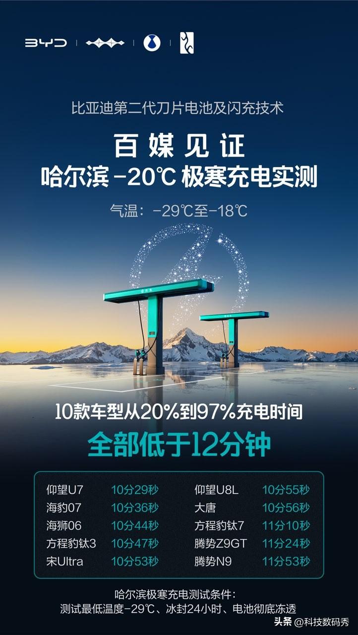 你敢信,比亚迪汽车第二代刀片电池现在已经能做到5分钟充好,9分钟充饱,就算是东北冬季严寒地区-30℃低温也仅仅只需要多3分钟同样可以充饱,闪充桩一旦跟上之后这必然彻底解决电车车主们的充电焦虑。 更硬核的是,比亚迪这个闪充技术不影响电池寿命,因为比亚迪把散热做到了极致,“锂离子高速通道”和智能热管理,让电池耐用性全面升级,况且官方还把电池质保容量门槛提升至77.5%,只要电池容量低于这个数值就给你免费更换,这你还有啥担心的? 安全更是底气所在,500次闪充循环后针刺不起火,底部撞击10倍国标能量依然安稳,比亚迪这次硬核闪充技术树立行业新标杆,比亚迪无愧为“电池大王”!