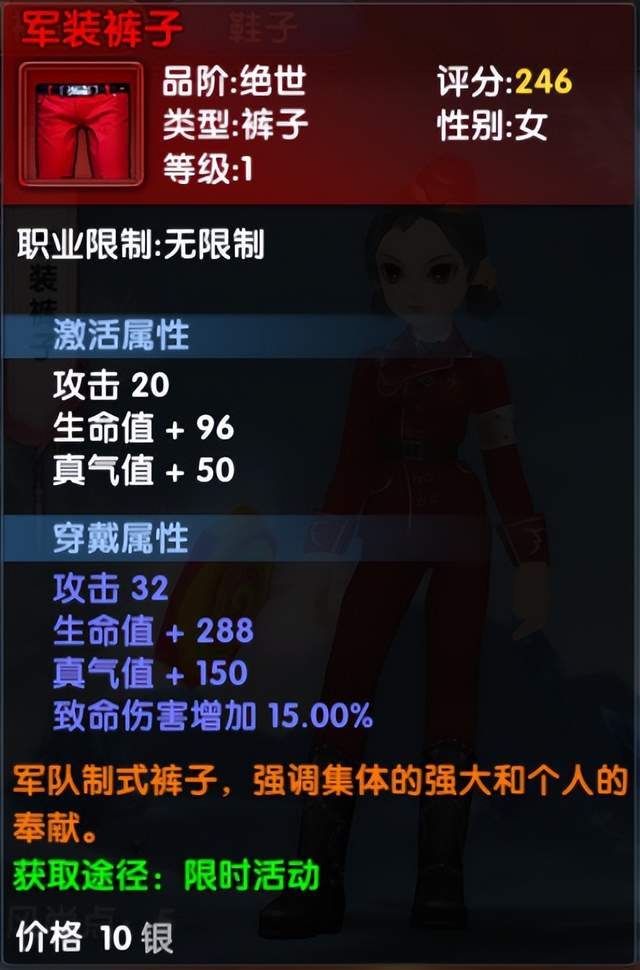 军装:裤子自带15%暴击伤害,当前版本天花板属性!