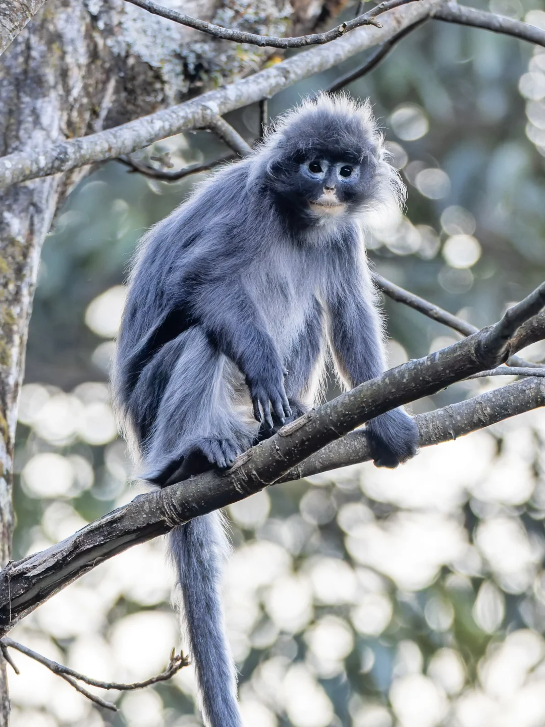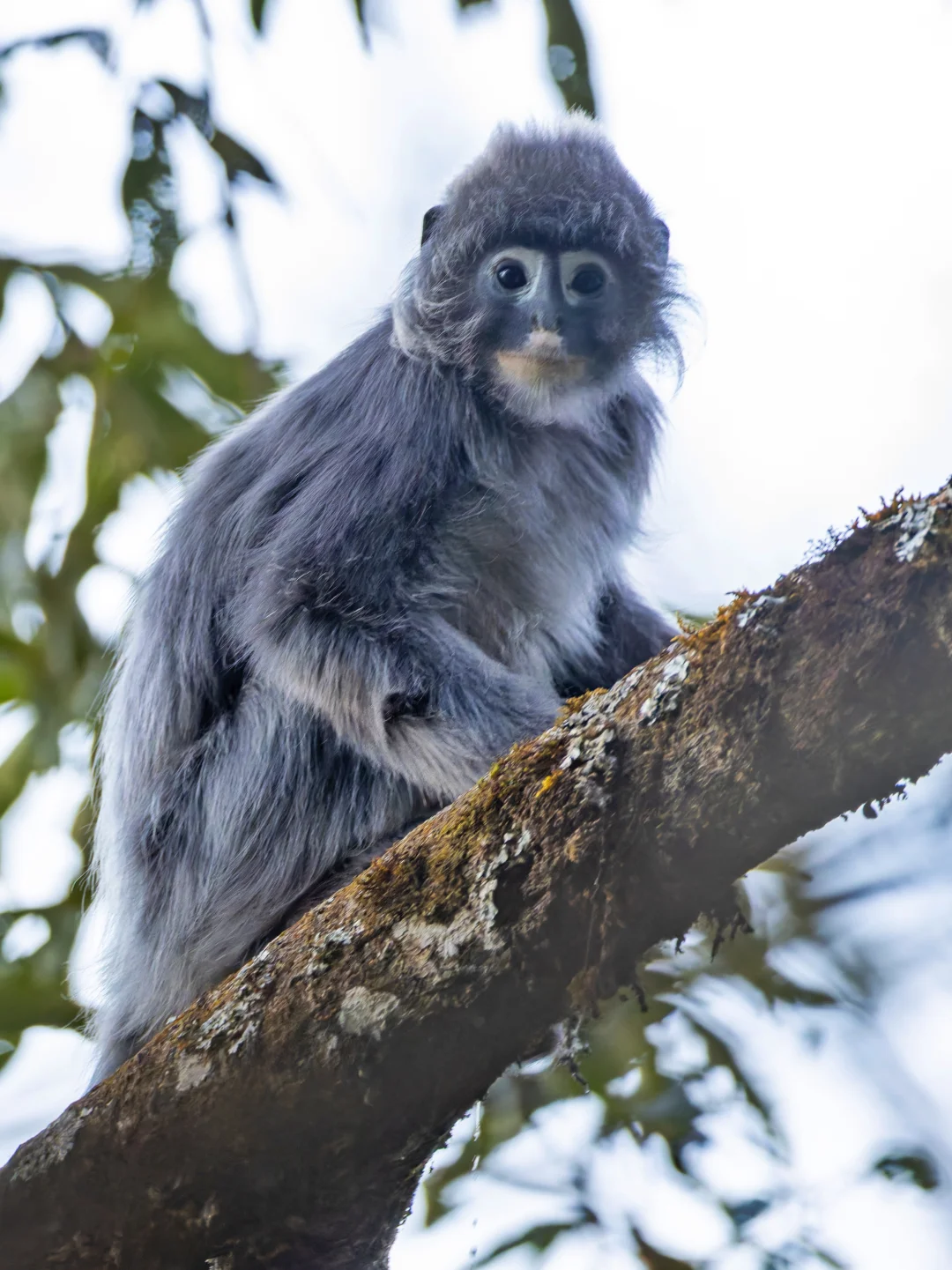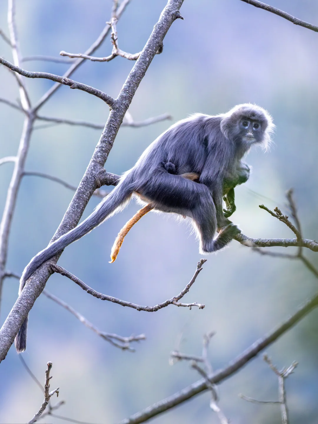 中缅灰叶猴,Shan Langur,灵长目猴科乌叶猴属,国家一级保护动物。这种珍稀动物分布在缅甸东部到老挝的部分地区,我国在云南西部有分布。以前是菲氏叶猴的亚种,2020年基因测序研究确认其为独立物种。