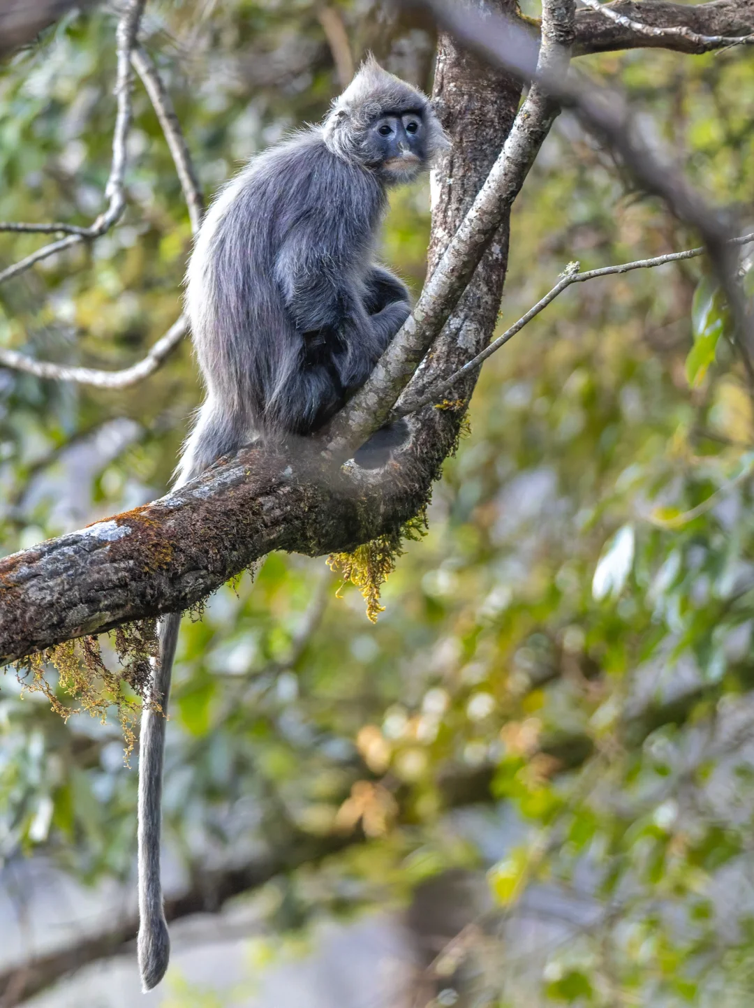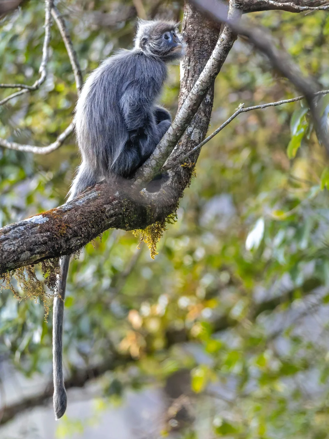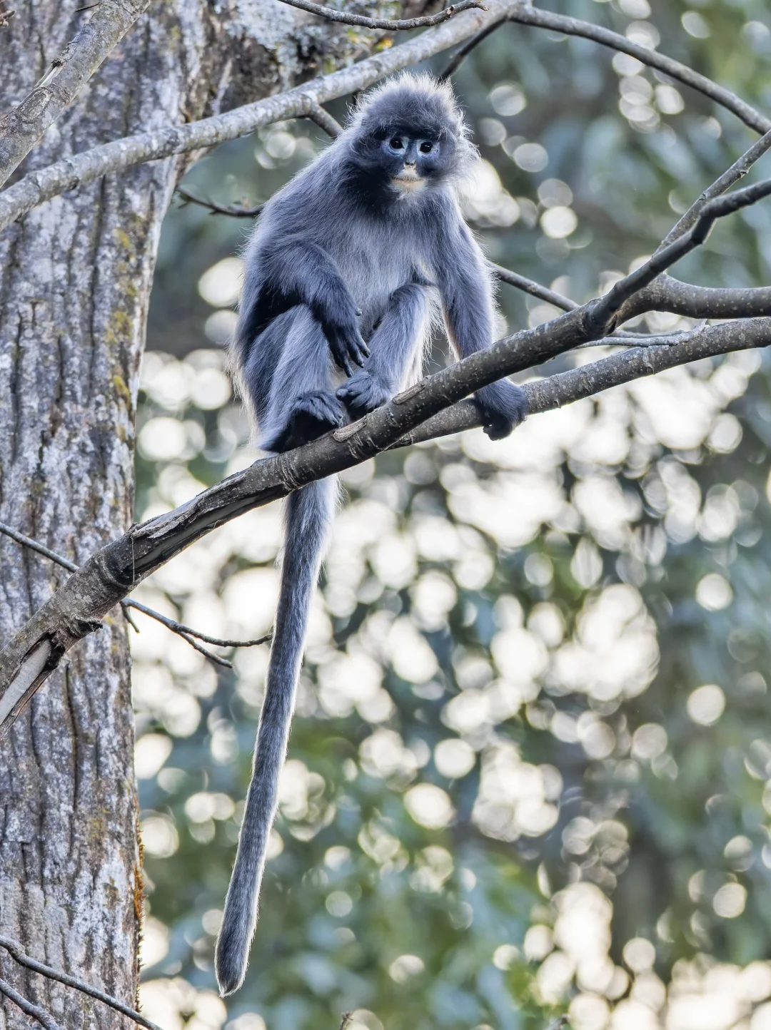 中缅灰叶猴,Shan Langur,灵长目猴科乌叶猴属,国家一级保护动物。这种珍稀动物分布在缅甸东部到老挝的部分地区,我国在云南西部有分布。以前是菲氏叶猴的亚种,2020年基因测序研究确认其为独立物种。