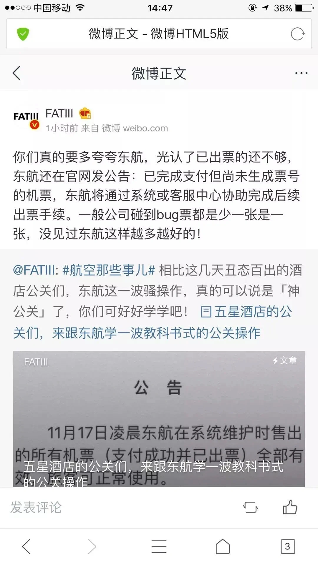 总之,东航已经遭遇了一场舆论公关危机。