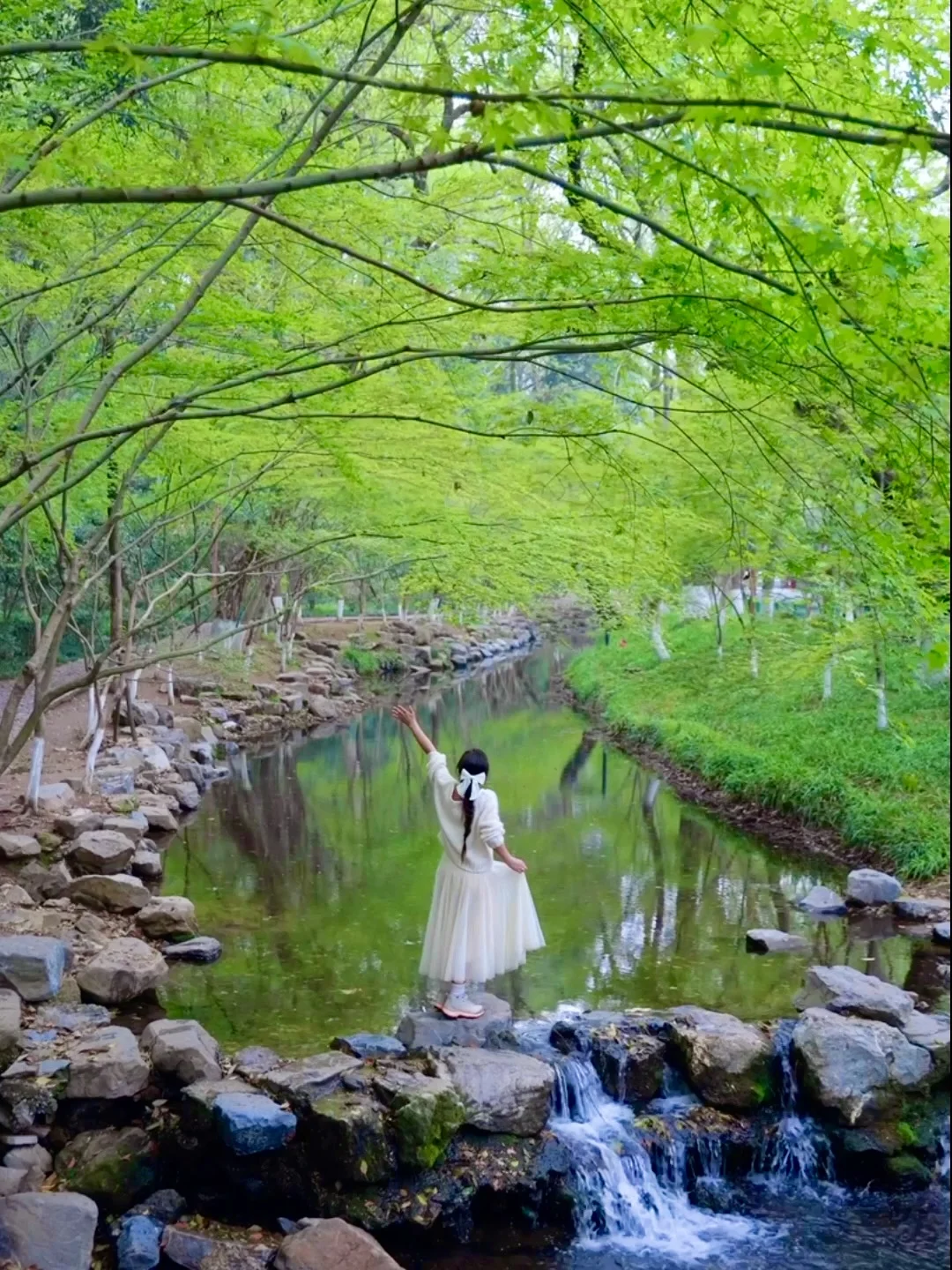 九溪十八涧特别适合步行吸氧,整个路线平坦好走,适合各类人群,春日里满园绿色的茶园,泉水叮咚,犹如水墨画般,如果体力不好的宝子这边也有小巴士可以平替。